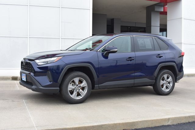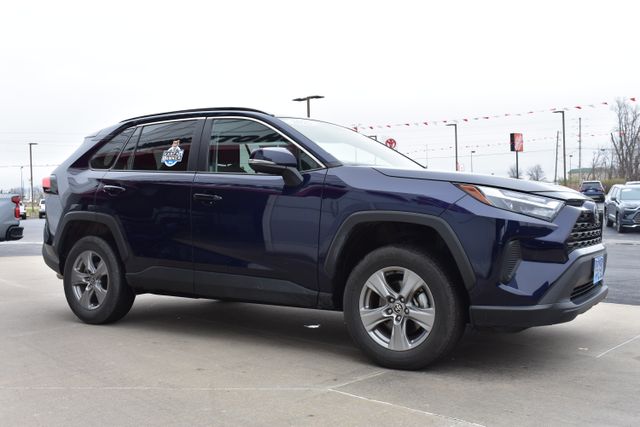 2025 Toyota RAV4 Blue XLE 2.5L 4-Cylinder DOHC Dual VVT-i 8-Speed Automatic AWD Clean Carfax, One Owner, Navigation, Backup Camera, RAV4 XLE, 8-Speed Automatic, AWD, Blue, Ash w/Fabric Seat Trim, 6 Speakers, ABS brakes, Air Conditioning, Alloy wheels, AM/FM radio: SiriusXM, Automatic temperature control, Bumpers: body-color, Driver door bin, Driver vanity mirror, Exterior Parking Camera Rear, Front Bucket Seats, Front dual zone A/C, Front reading lights, Fully automatic headlights, Heated door mirrors, Illuminated entry, Low tire pressure warning, Outside temperature display, Overhead console, Panic alarm, Passenger door bin, Passenger vanity mirror, Power door mirrors, Power driver seat, Power steering, Power windows, Radio data system, Rear seat center armrest, Rear window defroster, Rear window wiper, Remote keyless entry, Speed control, Split folding rear seat, Spoiler, Steering wheel mounted audio controls, Telescoping steering wheel, Tilt steering wheel, Traction control, Turn signal indicator mirrors.