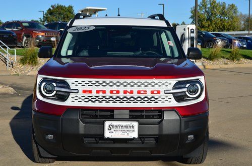 Not all customers qualify for all rebates, see dealer for details. Price includes: $1000 - Auto Show Retail Bonus Cash. Exp. 03/02/2026 Ruby Red Metallic 2025 Ford 1.5L EcoBoost Bronco Sport Heritage 25/30 City/Highway MPG
