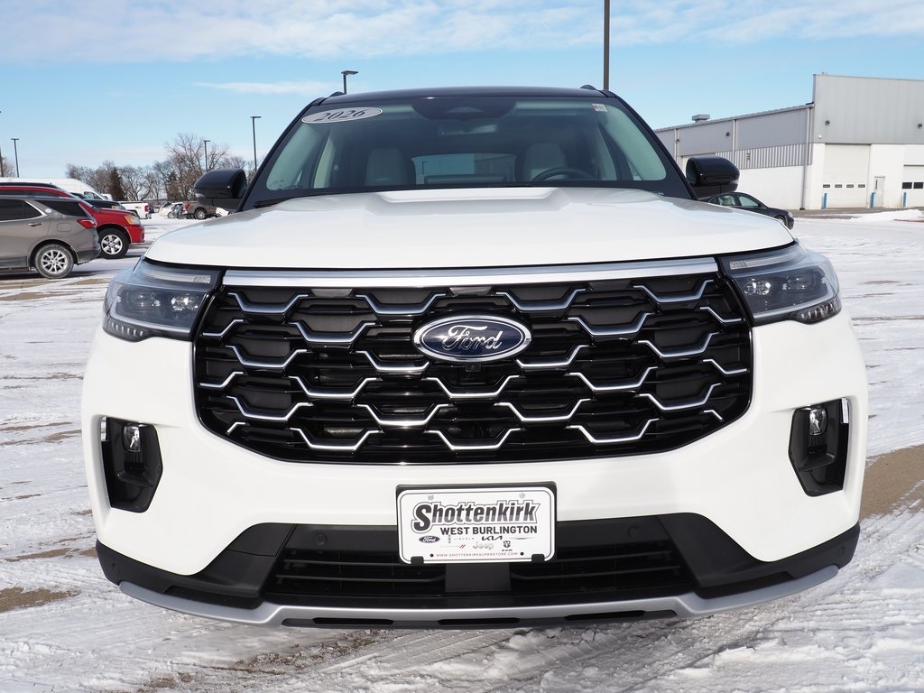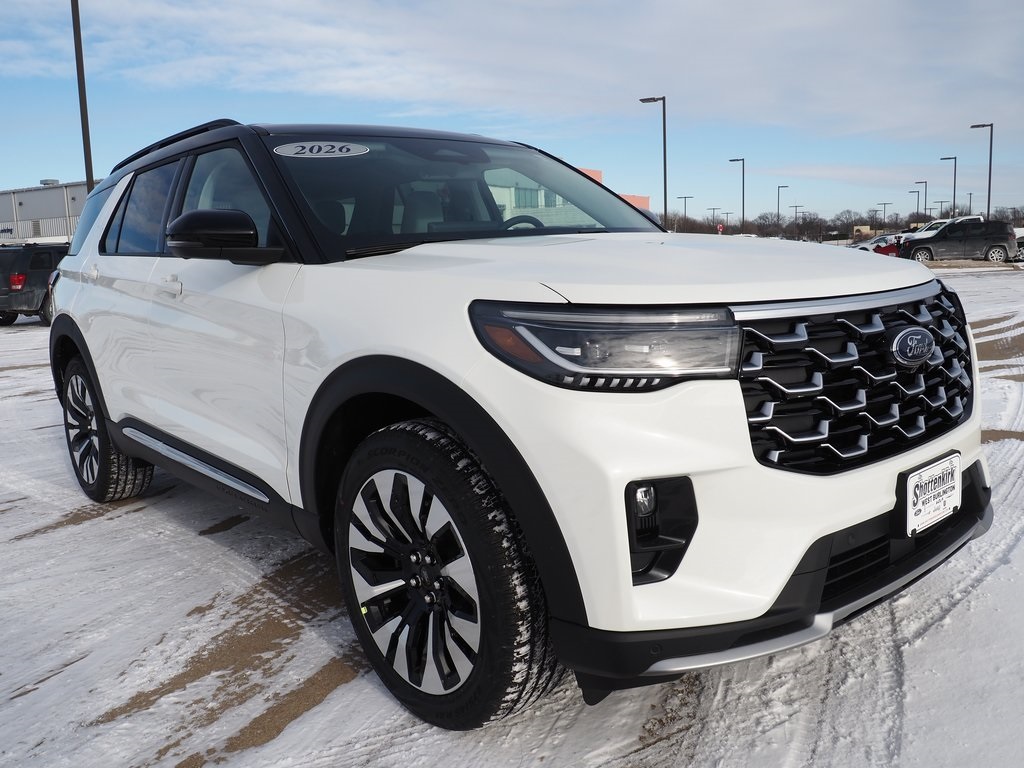 Not all customers qualify for all rebates, see dealer for details. Price includes: $1000 - Auto Show Retail Bonus Cash. Exp. 03/02/2026 White Metallic 2026 Ford 2.3L EcoBoost I-4 Explorer Platinum 20/27 City/Highway MPG