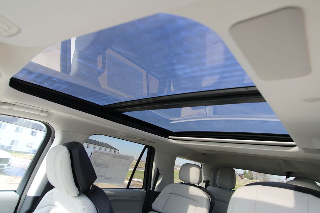 - First and second-row sliding and tilting glass sunroof with express open/close activation sunshade