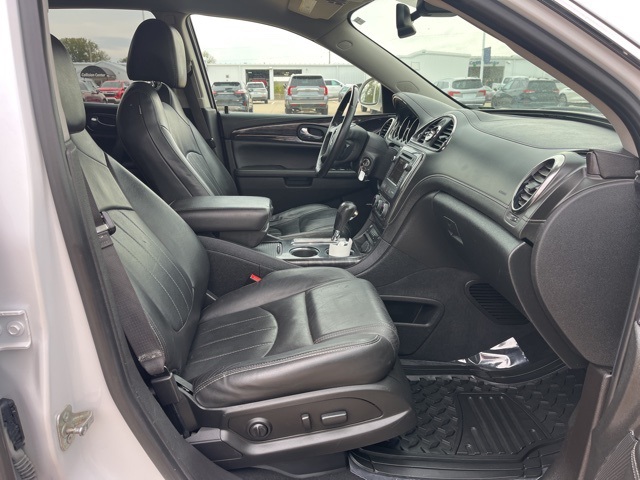 Clean CARFAX. Navigation, Leather, Heated and cooled seats, Heated seats, Heated steering wheel, XM SIRIUS Radio, Local trade, Shottenkirk Certified, Fully Serviced and Detailed, Bluetooth, Three rows of seating, Power driver's seat, Power passenger seat, Blind spot indicator, Onstar, Free Carfax history report, Steering Wheel Controls, Alloy Wheels, Leather Interior, Lane Monitor, Enclave Premium Group, 4D Sport Utility, 3.6L V6 SIDI VVT, 6-Speed Automatic Electronic with Overdrive, AWD, White Frost Tricoat, Ebony w/Ebony Accents w/Perforated Leather-Appointed Seat Trim, 10 Speakers, 3.16 Axle Ratio, 3rd row seats: split-bench, 4-Wheel Disc Brakes, 7-Passenger Seating, ABS brakes, Air Conditioning, Alloy wheels, AM/FM radio: SiriusXM, Articulating Headlights, Auto tilt-away steering wheel, Auto-dimming door mirrors, Auto-dimming Rear-View mirror, Automatic temperature control, Bose Performance-Enhanced 10-Speaker System, Bose Sound System, Brake assist, Bumpers: body-color, CD player, Compass, Delay-off headlights, Driver door bin, Driver vanity mirror, Dual front impact airbags, Dual front side impact airbags, Electronic stabiliy control, Emergency communication system: OnStar Guidance, Exterior Parking Camera Rear, Forward Collision Alert & Lane Departure Warning, Four wheel independent suspension, Front anti-roll bar, Front Bucket Seats, Front Center Armrest w/Storage, Front dual zone A/C, Front License Plate Mounting Bracket, Front reading lights, Fully automatic headlights, Garage door transmitter, Heated & Cooled Driver & Front Passenger Seats, Heated door mirrors, Heated front seats, Heated steering wheel, High intensity discharge headlights: Bi-Xenon, Illuminated entry, Leather steering wheel, Low tire pressure warning, Memory seat, Navigation System, NavTraffic, Occupant sensing airbag, Outside temperature display, Overhead airbag, Panic alarm, Passenger door bin, Passenger vanity mirror, Perforated Leather-Appointed Seat Trim, Power door mirrors, Power driver seat, Power Liftgate, Power passenger seat, Power steering, Power Tilt & Telescopic Steering Column, Power windows, Power-Folding Heated Body-Color Outside Mirrors, Preferred Equipment Group 1SN, Premium Package, Radio data system, Radio: Color Touch AM/FM/CD/Nav w/IntelliLink, Rear air conditioning, Rear anti-roll bar, Rear audio controls, Rear Audio System Controls, Rear Parking Sensors, Rear reading lights, Rear window defroster, Rear window wiper, Remote keyless entry, Roof rack: rails only, Security system, Speed control, Speed-sensing steering, Spoiler, Steering wheel memory, Steering wheel mounted audio controls, Tachometer, Telescoping steering wheel, Tilt steering wheel, Traction control, Trip computer, Turn signal indicator mirrors, Variably intermittent wipers, Ventilated front seats, Voltmeter, Wheels: 19" Chrome-Clad Cast Aluminum.