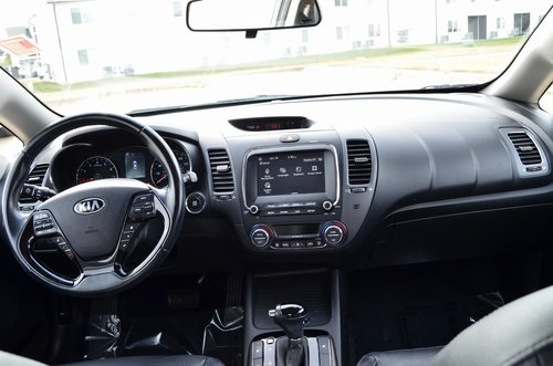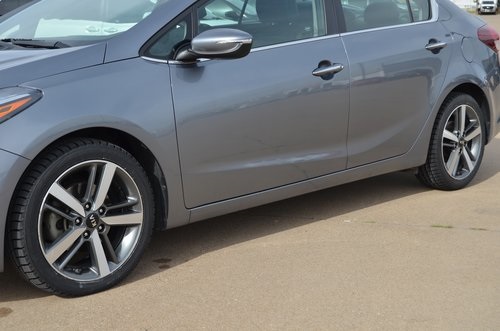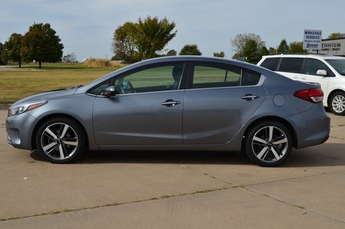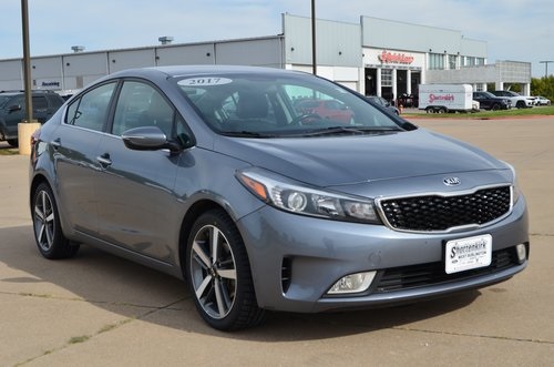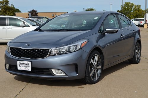 CARFAX One-Owner. 2017 Kia Forte EX Phantom Gray 4D Sedan 2.0L I4 DOHC Dual CVVT 6-Speed Automatic FWD EX This vehicle comes well equipped with 17" x 7.0" Alloy Wheels, 4-Wheel Disc Brakes, 6 Speakers, ABS brakes, Air Conditioning, Alloy wheels, AM/FM radio: SiriusXM, Apple CarPlay & Android Auto, Automatic temperature control, Brake assist, Bumpers: body-color, Carpeted Floor Mats, Delay-off headlights, Driver door bin, Driver vanity mirror, Dual front impact airbags, Dual front side impact airbags, Electronic Stability Control, Exterior Parking Camera Rear, Front anti-roll bar, Front Bucket Seats, Front Center Armrest, Front dual zone A/C, Front fog lights, Front reading lights, Front wheel independent suspension, Fully automatic headlights, Heated door mirrors, Heated Front Bucket Seats, Heated front seats, Illuminated entry, Leather Seat Trim, Leather Shift Knob, Leather steering wheel, Low tire pressure warning, Occupant sensing airbag, Outside temperature display, Overhead airbag, Overhead console, Panic alarm, Passenger door bin, Passenger vanity mirror, Power door mirrors, Power steering, Power windows, Radio: UVO eServices Infotainment AM/FM/MP3 Audio, Rear seat center armrest, Rear window defroster, Remote keyless entry, Security system, Speed control, Split folding rear seat, Steering wheel mounted audio controls, Tachometer, Telescoping steering wheel, Tilt steering wheel, Traction control, Trip computer, Turn signal indicator mirrors, and Variably intermittent wipers. 25/33 City/Highway MPG