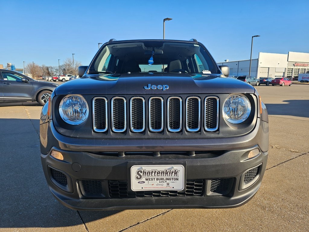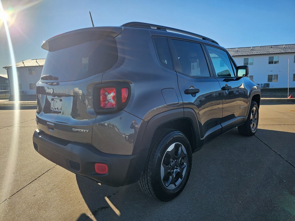 2018 Jeep Renegade Sport Granite Crystal Metallic Clearcoat 4D Sport Utility 2.4L I4 9-Speed 948TE Automatic 4WD Sport This vehicle comes well equipped with Power & Air Group (Air Conditioning, Power Heated Mirrors, and Speed Control), Quick Order Package 2EA, Sport Appearance Group (16" x 6.5" Aluminum Wheels), 16" x 6.5" Styled Steel Wheels, 4-Wheel Disc Brakes, 6 Speakers, ABS brakes, AM/FM radio, Anti-whiplash front head restraints, Brake assist, Cloth Low-Back Bucket Seats, Compass, Delay-off headlights, Driver door bin, Driver vanity mirror, Dual front impact airbags, Dual front side impact airbags, Electronic Stability Control, Four wheel independent suspension, Front anti-roll bar, Front Bucket Seats, Front Center Armrest, Front reading lights, Illuminated entry, Knee airbag, Low tire pressure warning, Normal Duty Suspension, Occupant sensing airbag, Outside temperature display, Overhead airbag, Overhead console, Panic alarm, ParkView Rear Back-Up Camera, Passenger door bin, Passenger vanity mirror, Power steering, Power windows, Radio data system, Radio: Uconnect 3 w/5" Display, Rear anti-roll bar, Rear window defroster, Rear window wiper, Remote keyless entry, Split folding rear seat, Spoiler, Steering wheel mounted audio controls, Tachometer, Telescoping steering wheel, Tilt steering wheel, Traction control, Trip computer, Variably intermittent wipers, and Voltmeter.