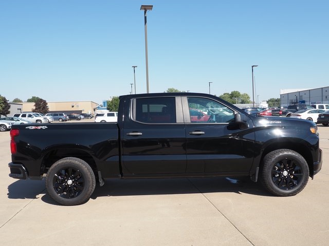 2019 Chevrolet Silverado 1500 Custom Black 4D Crew Cab EcoTec3 5.3L V8 6-Speed Automatic Electronic with Overdrive 4WD Custom This vehicle comes well equipped with Custom Convenience Package (Electric Rear-Window Defogger, EZ Lift Power Lock & Release Tailgate, LED Cargo Area Lighting, Remote Vehicle Starter System, and Theft Deterrent System (Unauthorized Entry)), Preferred Equipment Group 1CX (170 Amp Alternator, 3.5" Diagonal Monochromatic Display, Bluetooth® For Phone, Body Color Grille, Color-Keyed Carpeting Floor Covering, Deep-Tinted Glass, Electronic Cruise Control, Front Frame-Mounted Black Recovery Hooks, Front Rubberized Vinyl Floor Mats, Locking Tailgate, Manual Tilt Wheel Steering Column, Power Door Locks, Power Front Windows w/Driver Express Up/Down, Power Front Windows w/Passenger Express Down, Power Rear Windows w/Express Down, Rear 60/40 Folding Bench Seat (Folds Up), Rear Rubberized-Vinyl Floor Mats, and Remote Keyless Entry), Trailering Package (Hitch Guidance), 3.42 Rear Axle Ratio, 4-Wheel Disc Brakes, 6 Speakers, ABS brakes, Air Conditioning, Alloy wheels, AM/FM radio, Apple CarPlay/Android Auto, Auxiliary External Transmission Oil Cooler, Brake assist, Bumpers: body-color, Cloth Seat Trim, Delay-off headlights, Driver door bin, Driver vanity mirror, Dual Exhaust w/Polished Outlets, Dual front impact airbags, Dual front side impact airbags, Electronic Stability Control, Exterior Parking Camera Rear, Front 40/20/40 Split-Bench Seat, Front anti-roll bar, Front Center Armrest, Front License Plate Kit, Front reading lights, Front wheel independent suspension, Fully automatic headlights, Heated door mirrors, Heavy Duty Suspension, Heavy-Duty Rear Locking Differential, Illuminated entry, Integrated Trailer Brake Controller, Low tire pressure warning, Occupant sensing airbag, Outside temperature display, Overhead airbag, Overhead console, Panic alarm, Passenger door bin, Passenger vanity mirror, Polished Exhaust Tip, Power door mirrors, Power steering, Power windows, Premium audio system: Chevrolet Infotainment System 3, Radio data system, Radio: Chevrolet Infotainment 3 System, Rear reading lights, Rear step bumper, Remote keyless entry, Speed control, Speed-sensing steering, Split folding rear seat, Tachometer, Tilt steering wheel, Traction control, Trip computer, Variably intermittent wipers, Voltmeter, and Wheels: 20" x 9" Bright Silver Painted Aluminum.