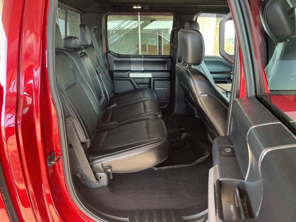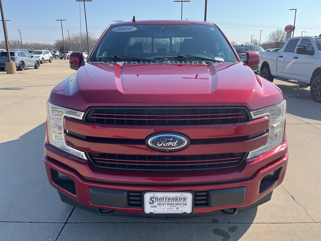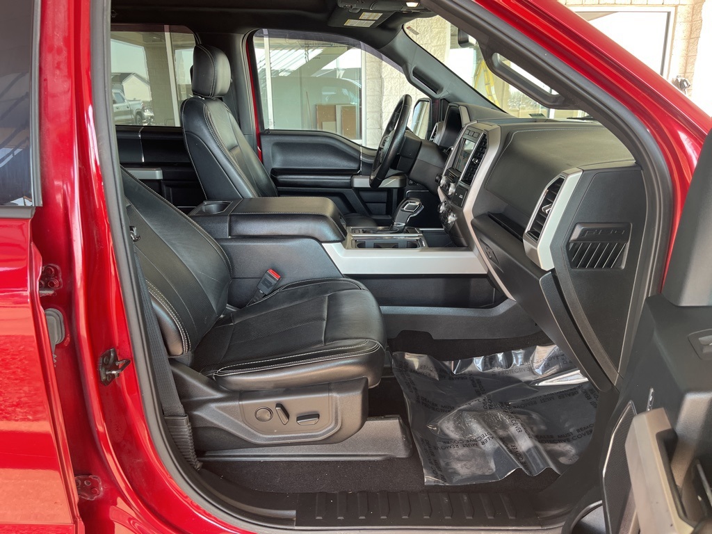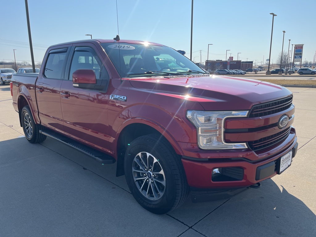 2019 Ford F-150 Lariat Ruby Red 4D SuperCrew 5.0L V8 10-Speed Automatic 4WD Lariat This vehicle comes well equipped with Equipment Group 502A Luxury (110V/400W Outlet, 2nd Row Heated Seats, BLIS Blind Spot Information System, Heated Steering Wheel, Leather-Trimmed Bucket Seats, LED Sideview Mirror Spotlights, Power Tilt/Telescoping Steering Column w/Memory, Quad Beam LED Headlamps & LED Taillamps/Fog Lamps, Radio: B&O Sound System by Bang & Olufsen, Rain-Sensing Wipers, Remote Start System w/Remote Tailgate Release, Reverse Sensing System, Universal Garage Door Opener, and Windshield Wiper De-Icer), GVWR: 7,050 lbs Payload Package, Lariat Chrome Appearance Package (Chrome 2-Bar Grille w/4 Minor Bars, Chrome Angular Step Bars, Chrome Door & Tailgate Handles w/Body-Color Bezel, Chrome Skull Caps on Exterior Mirrors, Single-Tip Chrome Exhaust, and Wheels: 18" Chrome-Like PVD), Lariat Sport Appearance Package (2-Bar Body-Color Grille w/4 Minor Bars, Accent-Color Angular Step Bars, Body-Color Front & Rear Bumpers, Box Side Decals, and Wheels: 18" 6-Spoke Machined-Aluminum), Technology Package (Active Park Assist and Lane-Keeping System), 18" Machined-Aluminum Wheels, 3.31 Axle Ratio, 4-Wheel Disc Brakes, 7 Speakers, ABS brakes, Adaptive Cruise Control, Adjustable pedals, Air Conditioning, Alloy wheels, AM/FM radio: SiriusXM, AppLink/Apple CarPlay and Android Auto, Auto High-beam Headlights, Auto-dimming door mirrors, Auto-dimming Rear-View mirror, Automatic temperature control, Brake assist, Bumpers: chrome, Class IV Trailer Hitch Receiver, Compass, Delay-off headlights, Driver door bin, Driver vanity mirror, Dual front impact airbags, Dual front side impact airbags, Electronic Stability Control, Emergency communication system: SYNC 3 911 Assist, Exterior Parking Camera Rear, Front anti-roll bar, Front Center Armrest w/Storage, Front dual zone A/C, Front fog lights, Front License Plate Bracket, Front reading lights, Front wheel independent suspension, Fully automatic headlights, Heated door mirrors, Heated front seats, Illuminated entry, Integrated Trailer Brake Controller, Leather-Trimmed 40/20/40 Front Seat, Low tire pressure warning, Memory seat, Occupant sensing airbag, Outside temperature display, Overhead airbag, Overhead console, Panic alarm, Passenger door bin, Passenger vanity mirror, Pedal memory, Power door mirrors, Power driver seat, Power Glass Sideview Mirr w/Body-Color Skull Caps, Power passenger seat, Power steering, Power windows, Radio data system, Radio: AM/FM Stereo w/6 Speakers, Rear reading lights, Rear seat center armrest, Rear step bumper, Rear window defroster, Remote keyless entry, Security system, SiriusXM Radio, Speed control, Speed-sensing steering, Split folding rear seat, Steering wheel mounted audio controls, SYNC 3, Tachometer, Telescoping steering wheel, Tilt steering wheel, Tough Bed Spray-In Bedliner, Traction control, Trip computer, Turn signal indicator mirrors, Twin Panel Moonroof, Variably intermittent wipers, Ventilated front seats, Voice-Activated Touchscreen Navigation, and Voltmeter.