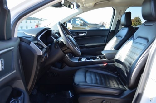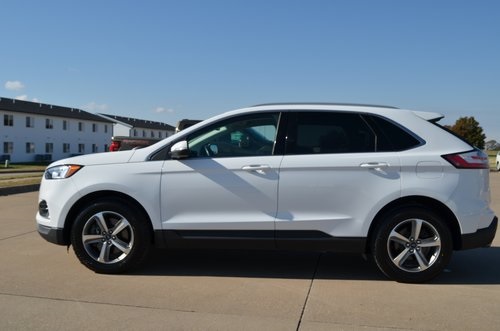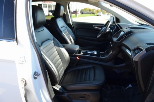 Recent Arrival! CARFAX One-Owner. 2020 Ford Edge SEL Oxford White 4D Sport Utility EcoBoost 2.0L I4 GTDi DOHC Turbocharged VCT 8-Speed Automatic AWD SEL This vehicle comes well equipped with Cold Weather Package (Front & Rear Floor Liners, Heated Steering Wheel, and Windshield Wiper De-Icer), Convenience Package (110V/150W AC Power Outlet, Foot-Activated Hands-Free Liftgate, Perimeter Alarm, Remote Start System, Universal Garage Door Opener (UGDO), and Wireless Charging Pad), Equipment Group 201A, 3.80 Axle Ratio, 4-Wheel Disc Brakes, 9 Speakers, ABS brakes, ActiveX Seating Material Heated Bucket Seats, Air Conditioning, Alloy wheels, AM/FM radio: SiriusXM, Auto High-beam Headlights, Auto-dimming Rear-View mirror, Automatic temperature control, Brake assist, Bumpers: body-color, Compass, Delay-off headlights, Driver door bin, Driver vanity mirror, Dual front impact airbags, Dual front side impact airbags, Electronic Stability Control, Emergency communication system: SYNC 3 911 Assist, FordPass Connect, Four wheel independent suspension, Front anti-roll bar, Front Bucket Seats, Front Center Armrest w/Storage, Front dual zone A/C, Front fog lights, Front reading lights, Fully automatic headlights, Heated door mirrors, Heated front seats, Illuminated entry, Knee airbag, Low tire pressure warning, Occupant sensing airbag, Outside temperature display, Overhead airbag, Overhead console, Panic alarm, Passenger door bin, Passenger vanity mirror, Power door mirrors, Power driver seat, Power passenger seat, Power steering, Power windows, Premium 9 Speaker Audio System, Radio: AM/FM Stereo/MP3 Capable, Rain sensing wipers, Rear anti-roll bar, Rear reading lights, Rear seat center armrest, Rear window defroster, Rear window wiper, Remote keyless entry, Roof rack: rails only, SiriusXM Radio, Speed control, Speed-Sensitive Wipers, Split folding rear seat, Spoiler, Steering wheel mounted audio controls, SYNC 3 Communications & Entertainment System, Tachometer, Telescoping steering wheel, Tilt steering wheel, Traction control, Trip computer, Turn signal indicator mirrors, Variably intermittent wipers, Wheels: 18" Bright-Machined Aluminum, and Wheels: 18" Sparkle Silver-Painted Aluminum. 21/28 City/Highway MPG