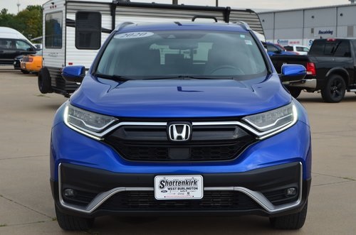 Recent Arrival! 2020 Honda CR-V Touring Aegean Blue Metallic 4D Sport Utility 1.5L I4 DOHC 16V CVT AWD Touring This vehicle comes well equipped with 4-Wheel Disc Brakes, 5.64 Axle Ratio, 9 Speakers, ABS brakes, Adaptive Cruise Control: Adaptive Cruise Control (ACC) with Low-Speed Follow, Air Conditioning, Alloy wheels, AM/FM radio: SiriusXM, Apple CarPlay/Android Auto, Auto High-beam Headlights, Auto-dimming Rear-View mirror, Automatic temperature control, Blind Spot Information (BSI) System warning, Brake assist, Bumpers: body-color, Compass, Delay-off headlights, Driver door bin, Driver vanity mirror, Dual front impact airbags, Dual front side impact airbags, Electronic Stability Control, Exterior Parking Camera Rear, Forward collision: Collision Mitigation Braking System (CMBS) + FCW mitigation, Four wheel independent suspension, Front anti-roll bar, Front Bucket Seats, Front Center Armrest, Front dual zone A/C, Front fog lights, Front reading lights, Garage door transmitter: HomeLink, Heated door mirrors, Heated Front Bucket Seats, Heated front seats, Heated steering wheel, Illuminated entry, Leather Seat Trim, Leather Shift Knob, Low tire pressure warning, Memory seat, Navigation system: Honda Satellite-Linked Navigation System, Occupant sensing airbag, Outside temperature display, Overhead airbag, Overhead console, Panic alarm, Passenger door bin, Passenger vanity mirror, Power door mirrors, Power driver seat, Power Liftgate, Power moonroof, Power passenger seat, Power steering, Power windows, Radio data system, Radio: 330-Watt AM/FM/HD/SiriusXM Prem Audio System, Rain sensing wipers, Rear anti-roll bar, Rear seat center armrest, Rear window defroster, Rear window wiper, Remote keyless entry, Roof rack: rails only, Security system, Speed control, Speed-sensing steering, Speed-Sensitive Wipers, Split folding rear seat, Spoiler, Steering wheel mounted audio controls, Tachometer, Telescoping steering wheel, Tilt steering wheel, Traction control, Trip computer, Turn signal indicator mirrors, Variably intermittent wipers, and Wheels: 19" Machine-Finished Alloy w/Gray Inserts. Odometer is 12006 miles below market average! 27/32 City/Highway MPG
