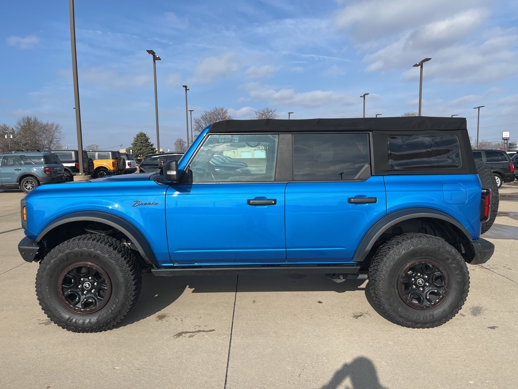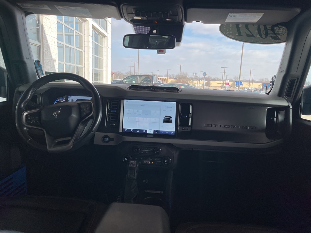 2021 Ford Bronco Badlands Velocity Blue Metallic 4D Sport Utility 2.7L EcoBoost V6 10-Speed Automatic 4WD Badlands This vehicle comes well equipped with Sasquatch Package (4.7 Final Drive Ratio, High Clearance Fender Flares, High Clearance Suspension, Position-Sensitive Bilstein Shock Absorbers, and Wheels: 17" Black High Gloss-Painted Aluminum) Sasquatch Package (4.7 Final Drive Ratio, High Clearance Fender Flares, High Clearance Suspension, Position-Sensitive Bilstein Shock Absorbers, and Wheels: 17" Black High Gloss-Painted Aluminum), 4-Wheel Disc Brakes, 6 Speakers, ABS brakes, Air Conditioning, Alloy wheels, AM/FM radio: SiriusXM with 360L, AM/FM Stereo, Auto High-beam Headlights, Brake assist, Compass, Delay-off headlights, Driver door bin, Driver vanity mirror, Dual front impact airbags, Dual front side impact airbags, Emergency communication system: 911 Assist, Exterior Parking Camera Rear, Front anti-roll bar, Front Bucket Seats, Front Center Armrest, Front reading lights, Front wheel independent suspension, Fully automatic headlights, Heated door mirrors, Illuminated entry, Integrated roll-over protection, Leather Shift Knob, Low tire pressure warning, Marine Grade Vinyl Bucket Seats, Occupant sensing airbag, Outside temperature display, Overhead airbag, Overhead console, Panic alarm, Passenger door bin, Passenger vanity mirror, Power door mirrors, Power steering, Power windows, Radio data system, Remote keyless entry, Security system, SiriusXM Radio w/360L, Speed control, Split folding rear seat, Steering wheel mounted audio controls, SYNC 4, Tachometer, Telescoping steering wheel, Tilt steering wheel, Traction control, Trip computer, Variably intermittent wipers, Voltmeter, and Wheels: 17" Machined Carbonized Aluminum.