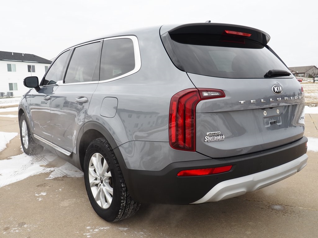 2021 Kia Telluride LX Everlasting Silver 4D Sport Utility 3.8L V6 DGI DOHC Dual CVVT 8-Speed Automatic AWD LX This vehicle comes well equipped with 3.648 Axle Ratio, 3rd row seats: split-bench, 4-Wheel Disc Brakes, 6 Speakers, ABS brakes, Air Conditioning, Alloy wheels, AM/FM radio: SiriusXM, Apple CarPlay & Android Auto, Brake assist, Bumpers: body-color, Carpeted Floor Mats, Delay-off headlights, Driver door bin, Driver vanity mirror, Dual front impact airbags, Dual front side impact airbags, Electronic Stability Control, Emergency communication system: 911 Connect, Four wheel independent suspension, Front anti-roll bar, Front Bucket Seats, Front Center Armrest, Front reading lights, Fully automatic headlights, Heated door mirrors, Illuminated entry, Knee airbag, Leather steering wheel, Low tire pressure warning, Occupant sensing airbag, Outside temperature display, Overhead airbag, Overhead console, Panic alarm, Passenger door bin, Passenger vanity mirror, Power door mirrors, Power steering, Power windows, Radio data system, Radio: AM/FM/SIRIUS Display Audio, Rear air conditioning, Rear anti-roll bar, Rear reading lights, Rear seat center armrest, Rear window defroster, Rear window wiper, Reclining 3rd row seat, Remote keyless entry, Security system, Smart Key w/ Push Button and Remote Start, SOFINO Leathertte Seat Trim, Speed control, Speed-sensing steering, Split folding rear seat, Spoiler, Steering wheel mounted audio controls, Tachometer, Telescoping steering wheel, Tilt steering wheel, Traction control, Trip computer, Turn signal indicator mirrors, Variably intermittent wipers, and Wheels: 7.5" x 18" Painted Finish Alloy.
