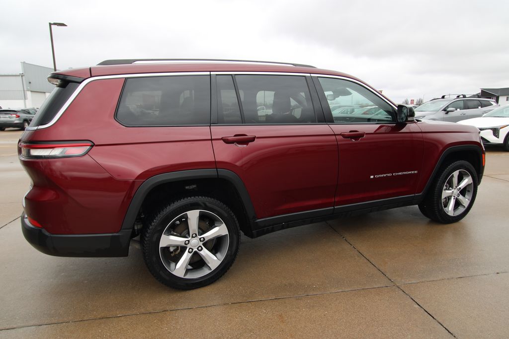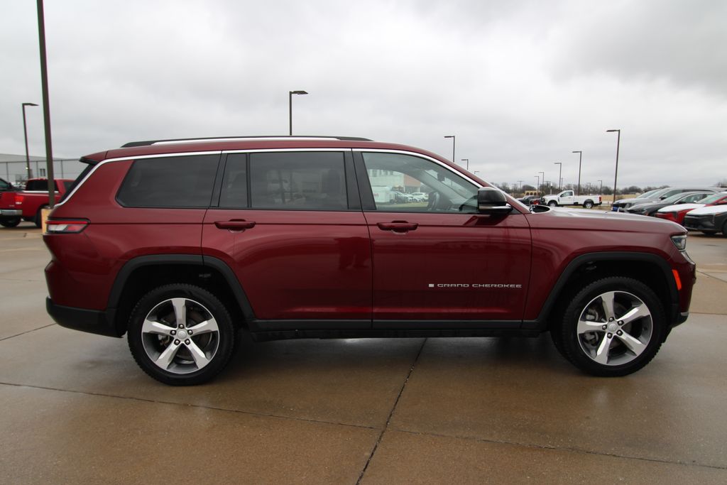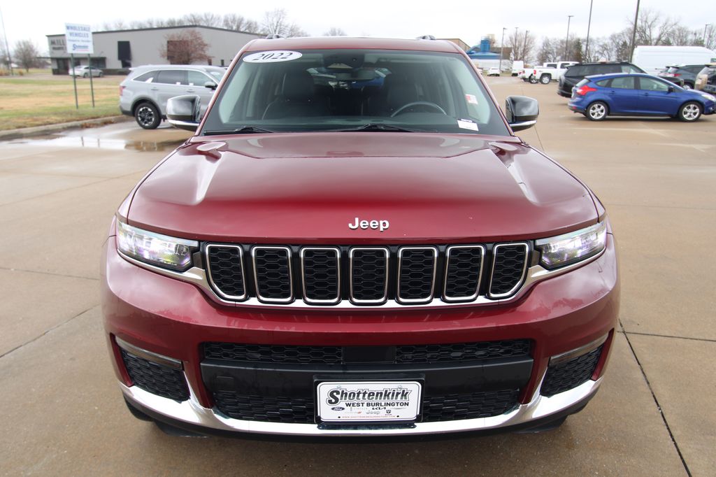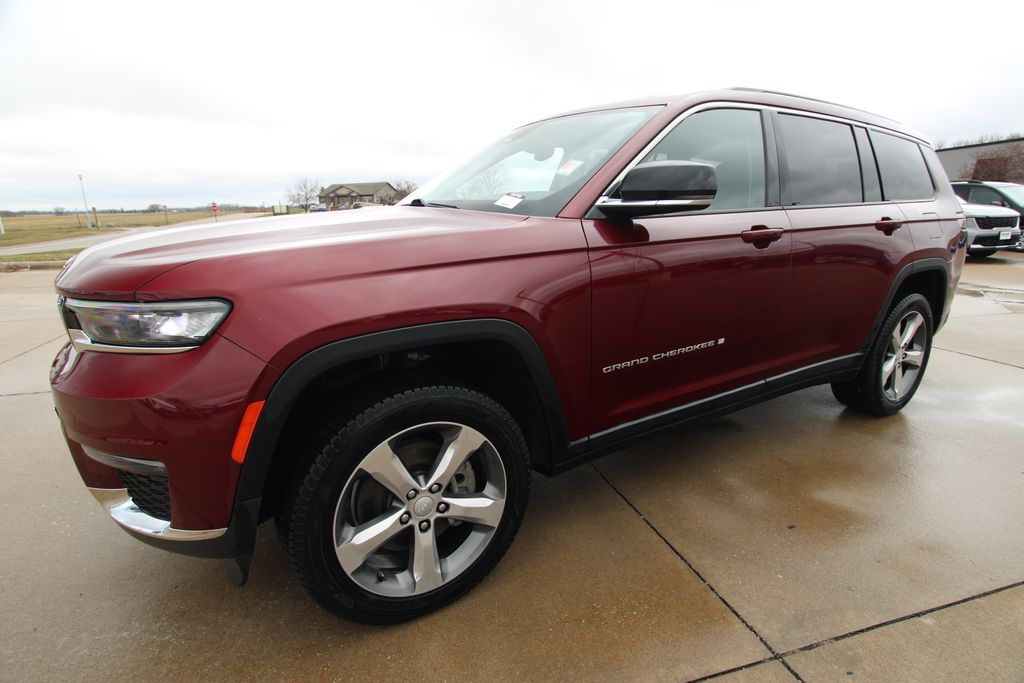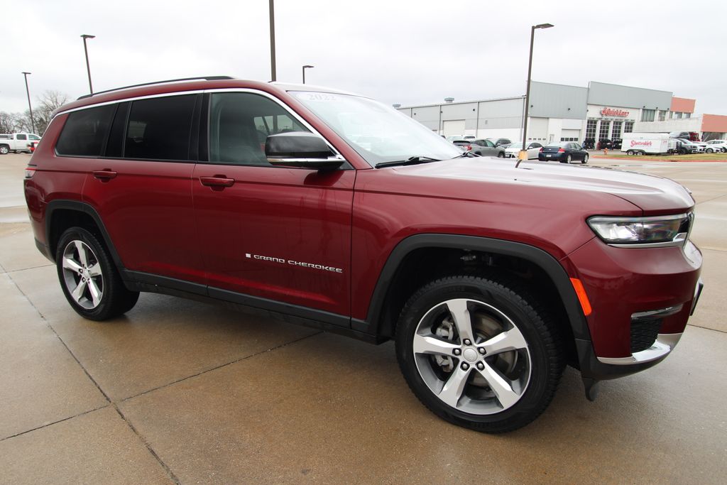 2022 Jeep Grand Cherokee L Limited Velvet Red Pearlcoat 4D Sport Utility 3.6L V6 24V VVT 8-Speed Automatic 4WD Limited This vehicle comes well equipped with Quick Order Package 22E, 10.1" Touchscreen Display, 3.45 Rear Axle Ratio, 3rd row seats: split-bench, 4-Wheel Disc Brakes, 4G LTE Wi-Fi Hot Spot, 506 Watt Amplifier, 6 Speakers, 9 Amplified Speakers w/Subwoofer, ABS brakes, Active Noise Control System, Air Conditioning, All Radio Equipped Vehicles, Alloy wheels, AM/FM radio: SiriusXM with 360L, Anti-whiplash front head restraints, Apple CarPlay, Audio memory, Auto High-beam Headlights, Automatic temperature control, Brake assist, Bumpers: body-color, Capri Leather Seats, Compass, Connected Travel & Traffic Services, Connectivity - US/Canada, Delay-off headlights, Disassociated Touchscreen Display, Driver door bin, Driver vanity mirror, Dual front impact airbags, Dual front side impact airbags, Dual-Pane Panoramic Sunroof, Electronic Stability Control, Emergency communication system, For Details, Visit DriveUconnect.com, For More Info, Call 800-643-2112, Four wheel independent suspension, Front anti-roll bar, Front Bucket Seats, Front Center Armrest w/Storage, Front dual zone A/C, Front fog lights, Front reading lights, Fully automatic headlights, Garage door transmitter, Global Telematics Box Module (TBM), Google Android Auto, GPS Antenna Input, GPS Navigation, HD Radio, Heated door mirrors, Heated front seats, Heated rear seats, Heated steering wheel, Illuminated entry, Integrated Center Stack Radio, Integrated Voice Command w/Bluetooth, Interior Rear Facing Camera, Knee airbag, Leather steering wheel, Low tire pressure warning, Manual Fold Seatbacks, Memory seat, Normal Duty Suspension, Occupant sensing airbag, Outside temperature display, Overhead airbag, Overhead console, Panic alarm, ParkView Rear Back-Up Camera, Passenger door bin, Passenger vanity mirror, Power door mirrors, Power driver seat, Power Liftgate, Power passenger seat, Power steering, Power windows, Radio data system, Radio: Uconnect 5 Nav w/10.1" Display, Radio: Uconnect 5 w/8.4" Display, Rear air conditioning, Rear anti-roll bar, Rear reading lights, Rear window defroster, Rear window wiper, Reclining 3rd row seat, Remote keyless entry, Security system, SiriusXM Radio Service, SiriusXM Satellite Radio, SiriusXM w/360L, Speed control, Speed-Sensitive Wipers, Split folding rear seat, Spoiler, Steering wheel mounted audio controls, Tachometer, Telescoping steering wheel, Tilt steering wheel, Traction control, Trip computer, Turn signal indicator mirrors, USB Host Flip, Variably intermittent wipers, Voltmeter, Wheels: 18" x 8.0" Fully Painted Aluminum 2, and Wheels: 20" x 8.5" Polished/Painted AluminuM.