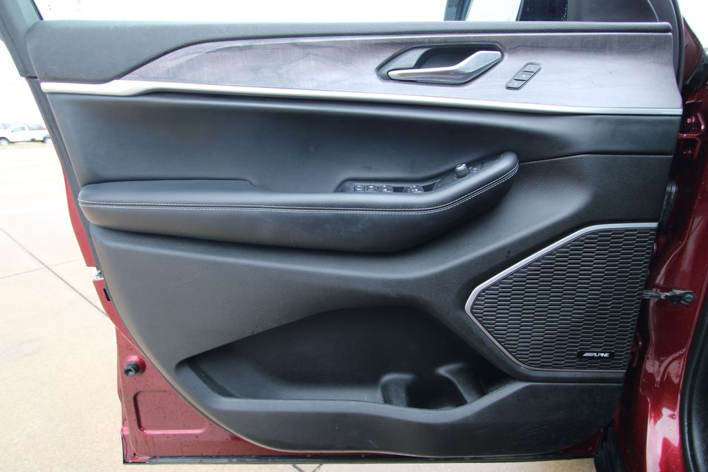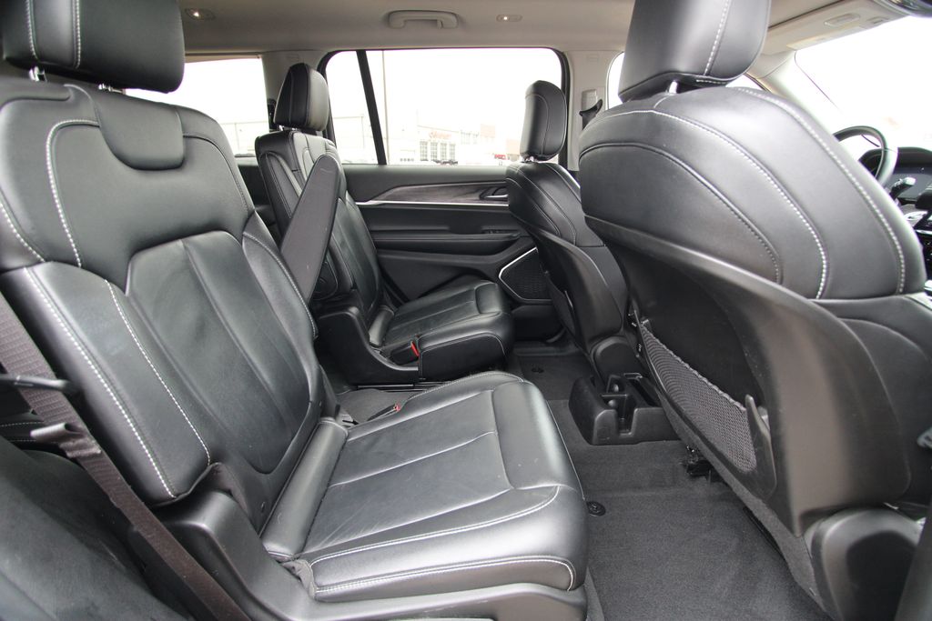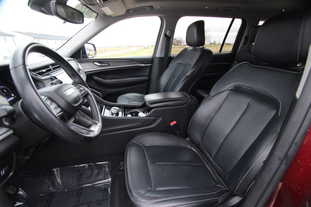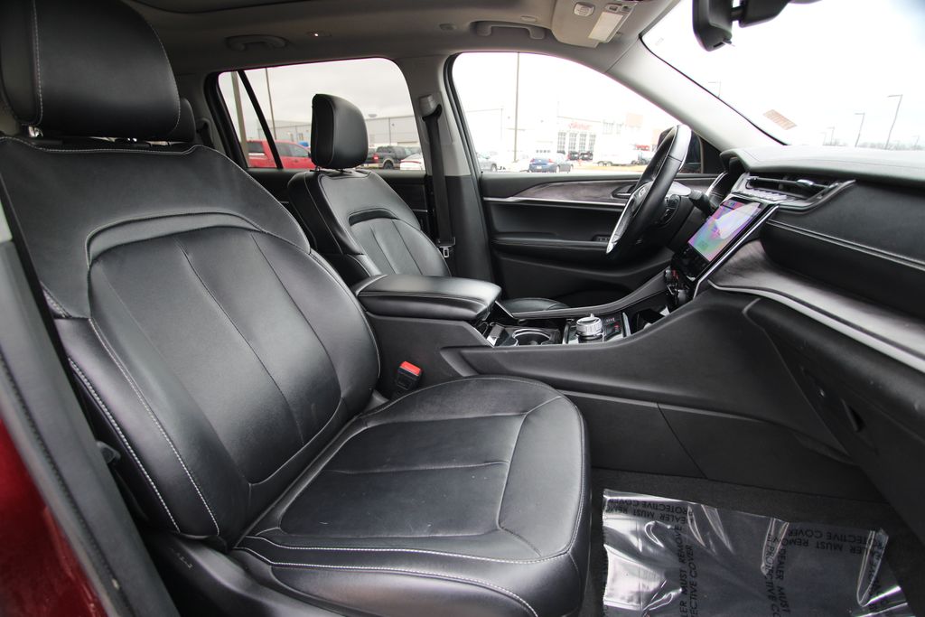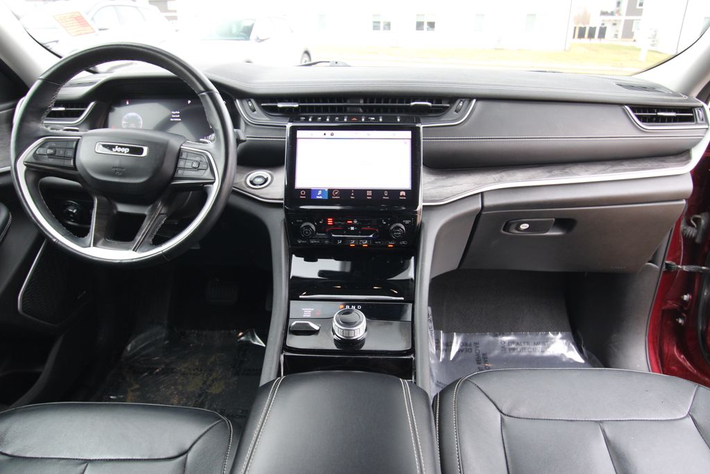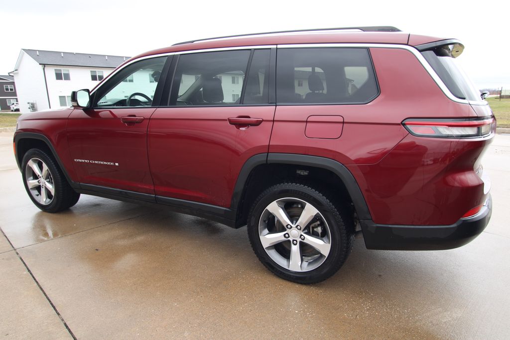 2022 Jeep Grand Cherokee L Limited Velvet Red Pearlcoat 4D Sport Utility 3.6L V6 24V VVT 8-Speed Automatic 4WD Limited This vehicle comes well equipped with Quick Order Package 22E, 10.1" Touchscreen Display, 3.45 Rear Axle Ratio, 3rd row seats: split-bench, 4-Wheel Disc Brakes, 4G LTE Wi-Fi Hot Spot, 506 Watt Amplifier, 6 Speakers, 9 Amplified Speakers w/Subwoofer, ABS brakes, Active Noise Control System, Air Conditioning, All Radio Equipped Vehicles, Alloy wheels, AM/FM radio: SiriusXM with 360L, Anti-whiplash front head restraints, Apple CarPlay, Audio memory, Auto High-beam Headlights, Automatic temperature control, Brake assist, Bumpers: body-color, Capri Leather Seats, Compass, Connected Travel & Traffic Services, Connectivity - US/Canada, Delay-off headlights, Disassociated Touchscreen Display, Driver door bin, Driver vanity mirror, Dual front impact airbags, Dual front side impact airbags, Dual-Pane Panoramic Sunroof, Electronic Stability Control, Emergency communication system, For Details, Visit DriveUconnect.com, For More Info, Call 800-643-2112, Four wheel independent suspension, Front anti-roll bar, Front Bucket Seats, Front Center Armrest w/Storage, Front dual zone A/C, Front fog lights, Front reading lights, Fully automatic headlights, Garage door transmitter, Global Telematics Box Module (TBM), Google Android Auto, GPS Antenna Input, GPS Navigation, HD Radio, Heated door mirrors, Heated front seats, Heated rear seats, Heated steering wheel, Illuminated entry, Integrated Center Stack Radio, Integrated Voice Command w/Bluetooth, Interior Rear Facing Camera, Knee airbag, Leather steering wheel, Low tire pressure warning, Manual Fold Seatbacks, Memory seat, Normal Duty Suspension, Occupant sensing airbag, Outside temperature display, Overhead airbag, Overhead console, Panic alarm, ParkView Rear Back-Up Camera, Passenger door bin, Passenger vanity mirror, Power door mirrors, Power driver seat, Power Liftgate, Power passenger seat, Power steering, Power windows, Radio data system, Radio: Uconnect 5 Nav w/10.1" Display, Radio: Uconnect 5 w/8.4" Display, Rear air conditioning, Rear anti-roll bar, Rear reading lights, Rear window defroster, Rear window wiper, Reclining 3rd row seat, Remote keyless entry, Security system, SiriusXM Radio Service, SiriusXM Satellite Radio, SiriusXM w/360L, Speed control, Speed-Sensitive Wipers, Split folding rear seat, Spoiler, Steering wheel mounted audio controls, Tachometer, Telescoping steering wheel, Tilt steering wheel, Traction control, Trip computer, Turn signal indicator mirrors, USB Host Flip, Variably intermittent wipers, Voltmeter, Wheels: 18" x 8.0" Fully Painted Aluminum 2, and Wheels: 20" x 8.5" Polished/Painted AluminuM.