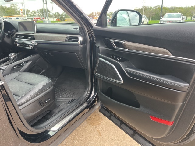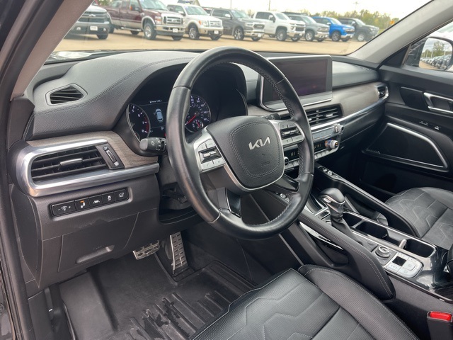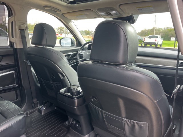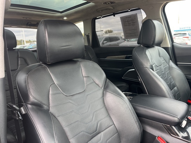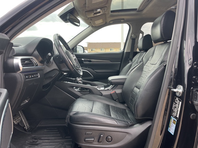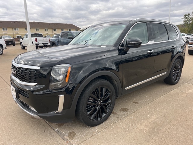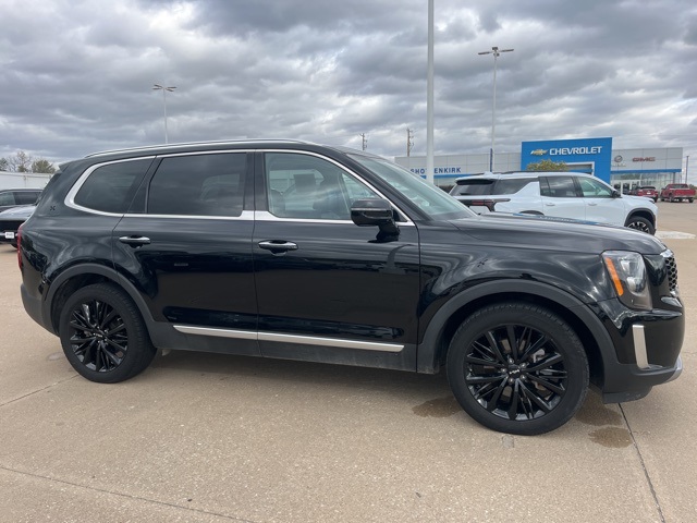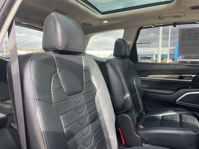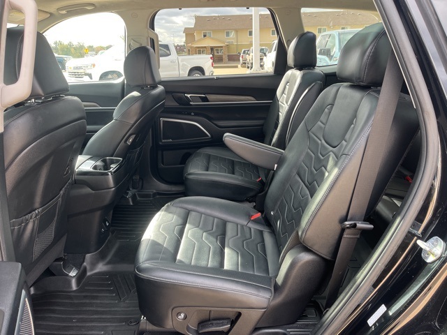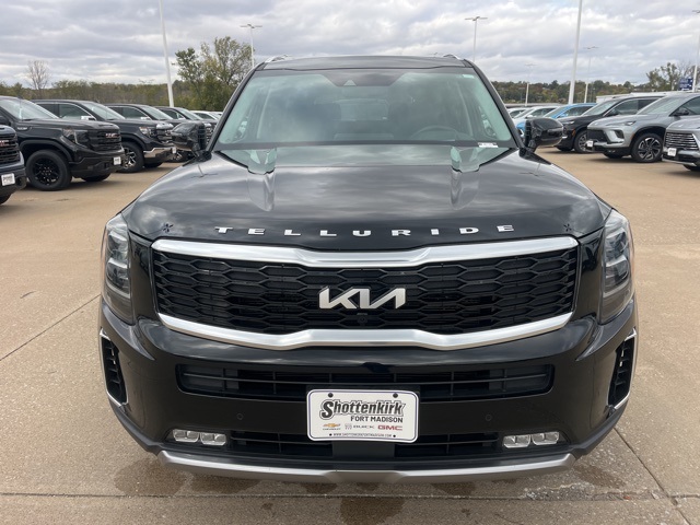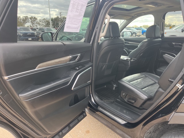 CARFAX One-Owner. Clean CARFAX. Leather, Heated and cooled seats, Heated seats, Heated steering wheel, Local trade, Shottenkirk Certified, Fully Serviced and Detailed, Bluetooth, Rear Back Up Camera, Three rows of seating, Power driver's seat, Power passenger seat, Memory seats, Blind spot indicator, Free Carfax history report, Steering Wheel Controls, Alloy Wheels, Leather Interior, Telluride SX, 4D Sport Utility, 3.8L V6 DOHC, 8-Speed Automatic, AWD, Ebony Black, Black w/Leather Seat Trim or Premium Nappa Leather Seat Trim, 10 Speakers, 110V Inverter, 3.648 Axle Ratio, 3rd row seats: split-bench, 4-Wheel Disc Brakes, ABS brakes, Air Conditioning, Alloy wheels, AM/FM radio: SiriusXM, Apple CarPlay & Android Auto, Auto High-beam Headlights, Auto-dimming Rear-View mirror, Automatic temperature control, Brake assist, Bumpers: body-color, Carpeted Floor Mats, Compass, Delay-off headlights, Driver door bin, Driver vanity mirror, Dual front impact airbags, Dual front side impact airbags, Electronic stabiliy control, Emergency communication system: 911 Connect, Four wheel independent suspension, Front anti-roll bar, Front Bucket Seats, Front Center Armrest, Front dual zone A/C, Front fog lights, Front reading lights, Fully automatic headlights, Garage door transmitter: HomeLink, harman/kardon® Speakers, Heads-Up Display, Heated & Ventilated 2nd Row Seats, Heated & Ventilated Front Bucket Seats, Heated door mirrors, Heated front seats, Heated steering wheel, Illuminated entry, Knee airbag, Leather Seat Trim, Leather Shift Knob, Leather steering wheel, Low tire pressure warning, Memory seat, Occupant sensing airbag, Outside temperature display, Overhead airbag, Overhead console, Panic alarm, Passenger door bin, Passenger vanity mirror, Power door mirrors, Power driver seat, Power Liftgate, Power passenger seat, Power steering, Power windows, Premium Cloth Headliner & Pillar Trim, Premium Nappa Leather Seat Trim, Radio data system, Radio: AM/FM harman/kardon Audio System, Rain-Sensing Front Windshield Wipers, Rear air conditioning, Rear anti-roll bar, Rear audio controls, Rear reading lights, Rear window defroster, Rear window wiper, Reclining 3rd row seat, Remote keyless entry, Roof rack: rails only, Security system, Smart Key w/ Push Button and Remote Start, Speed control, Speed-sensing steering, Split folding rear seat, Spoiler, Steering wheel mounted audio controls, SX Prestige Package, Tachometer, Telescoping steering wheel, Tilt steering wheel, Traction control, Trip computer, Turn signal indicator mirrors, Variably intermittent wipers, Ventilated front seats, Wheels: 20" x 7.5" Black Alloy.