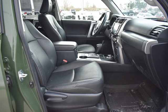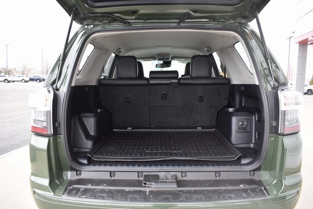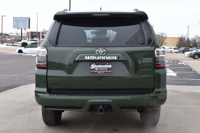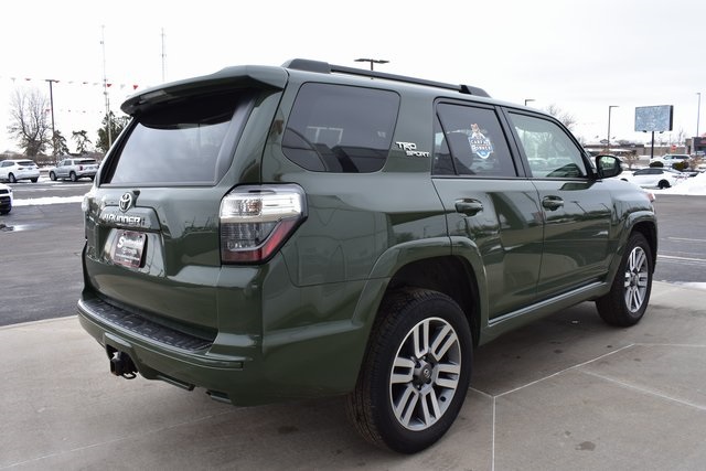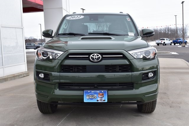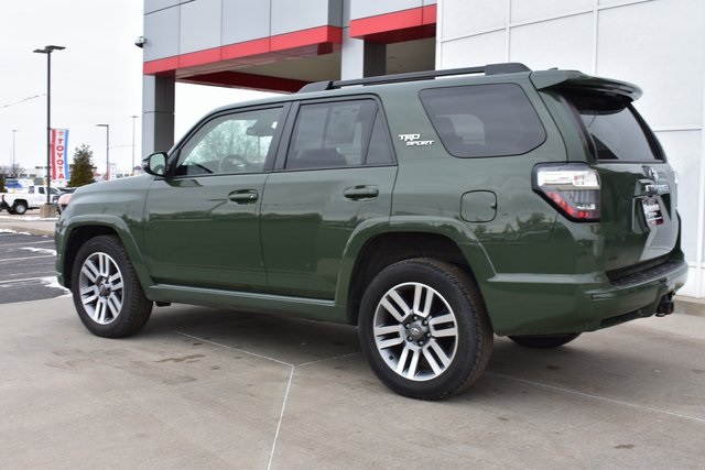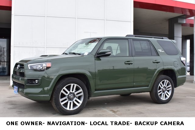 2022 Toyota 4Runner Green TRD Sport 4.0L V6 DOHC 24V 5-Speed with ECT 4WD Towing/Camper Pkg, One Owner, Navigation, Leather, Local Trade, Backup Camera, 4Runner TRD Sport, 5-Speed with ECT, 4WD, Green, 8 Speakers, ABS brakes, Air Conditioning, Alloy wheels, AM/FM radio: SiriusXM, Auto High-beam Headlights, Bumpers: body-color, Driver door bin, Driver vanity mirror, Exterior Parking Camera Rear, Front Bucket Seats, Front Center Armrest, Front reading lights, Garage Door Opener, Heated door mirrors, Illuminated entry, Leather Shift Knob, Leather steering wheel, Low tire pressure warning, Outside temperature display, Overhead console, Panic alarm, Passenger door bin, Passenger vanity mirror, Power door mirrors, Power driver seat, Power steering, Power windows, Radio: Audio, Rear seat center armrest, Rear window defroster, Rear window wiper, Remote keyless entry, Roof rack: rails only, SofTex Seat Trim, Speed control, Split folding rear seat, Spoiler, Steering wheel mounted audio controls, Telescoping steering wheel, Tilt steering wheel, Traction control, TRD Sport Badge.
