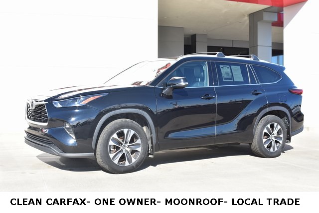 2022 Toyota Highlander Black XLE 3.5L V6 DOHC 8-Speed Automatic AWD Towing/Camper Pkg, Clean Carfax, One Owner, Sunroof/Moonroof, Leather, Local Trade, Backup Camera, Highlander XLE, 8-Speed Automatic, AWD, Black, 6 Speakers, ABS brakes, Air Conditioning, Alloy wheels, AM/FM radio: SiriusXM, Automatic temperature control, Bumpers: body-color, Driver door bin, Driver vanity mirror, Exterior Parking Camera Rear, Front Bucket Seats, Front Center Armrest, Front dual zone A/C, Front reading lights, Fully automatic headlights, Heated door mirrors, Illuminated entry, Leather Shift Knob, Low tire pressure warning, Panic alarm, Passenger door bin, Power door mirrors, Power driver seat, Power Liftgate, Power moonroof, Power passenger seat, Power steering, Power windows, Rear air conditioning, Rear window defroster, Rear window wiper, Reclining 3rd row seat, Remote keyless entry, Roof rack: rails only, Speed control, Split folding rear seat, Spoiler, Steering wheel mounted audio controls, Tilt steering wheel, Traction control, Turn signal indicator mirrors.