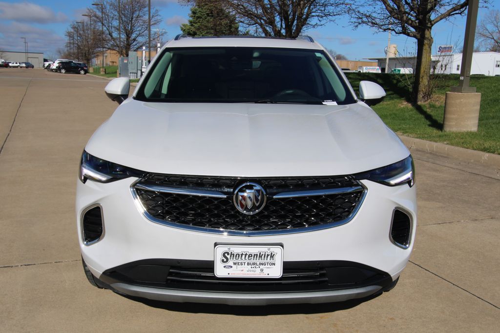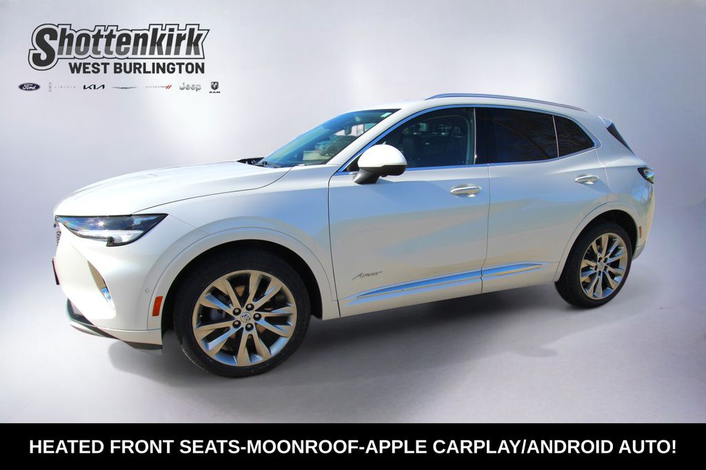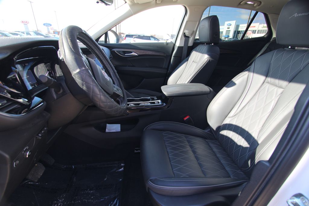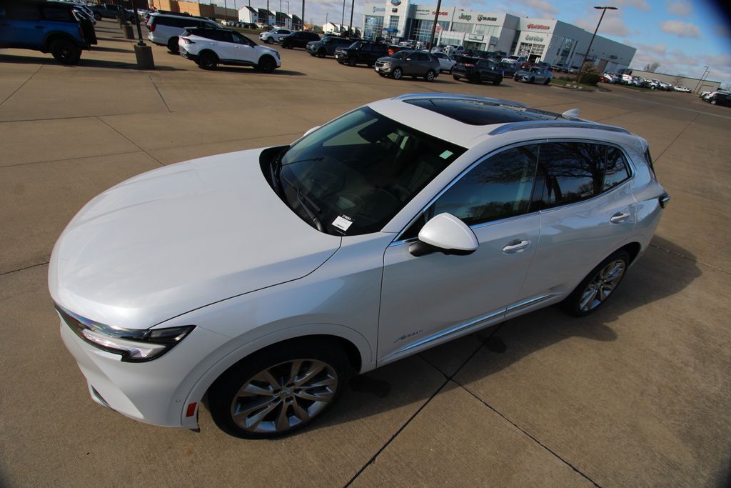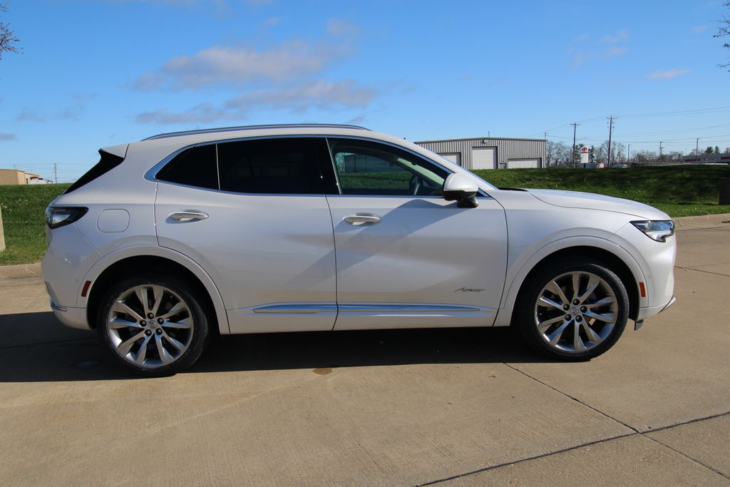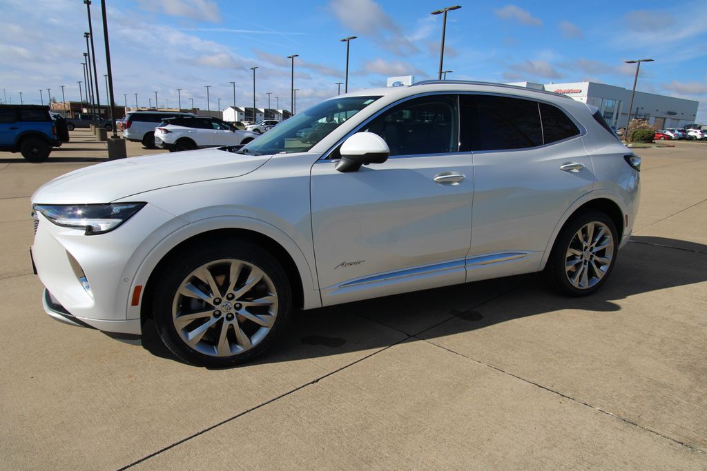 2023 Buick Envision Avenir White Frost Tricoat 4D Sport Utility 2.0L Turbocharged 9-Speed Automatic AWD Avenir This vehicle comes well equipped with Preferred Equipment Group 1SU, 3.47 Final Drive Axle Ratio, 4-Wheel Disc Brakes, 8-Way Power Driver Seat Adjuster, 9 Speakers, ABS brakes, Air Conditioning, Alloy wheels, AM/FM radio: SiriusXM, Apple CarPlay/Android Auto, Auto High-beam Headlights, Auto-dimming door mirrors, Auto-dimming Rear-View mirror, Automatic temperature control, Bose Premium 9-Speaker Audio System Feature, Brake assist, Bumpers: body-color, Compass, Delay-off headlights, Driver door bin, Driver vanity mirror, Dual front impact airbags, Dual front side impact airbags, Electronic Stability Control, Emergency communication system: OnStar and Buick connected services capable, Exterior Parking Camera Rear, Following Distance Indicator, Forward Collision Alert, Four wheel independent suspension, Front anti-roll bar, Front Bin Center Console USB Ports, Front Bucket Seats, Front Center Armrest, Front dual zone A/C, Front Passenger 8-Way Power Seat Adjuster, Front Pedestrian Braking, Front reading lights, Fully automatic headlights, Garage door transmitter, HD Radio, Heads-Up Display, Heated door mirrors, Heated Driver & Front Passenger Seats, Heated front seats, Heated Rear Outboard Seating Positions, Heated rear seats, Heated steering wheel, Illuminated entry, IntelliBeam Headlamp Control w/Auto High Beam, Knee airbag, Lane Keep Assist w/Lane Departure Warning, Low tire pressure warning, Memory Card Receptacle Audio System Feature, Memory seat, Navigation System, Occupant sensing airbag, Outside temperature display, Overhead airbag, Overhead console, Panic alarm, Passenger door bin, Passenger vanity mirror, Perforated Leather-Appointed Seat Trim, Power door mirrors, Power driver seat, Power Liftgate, Power moonroof, Power passenger seat, Power steering, Power windows, Premium audio system: Bose, Radio data system, Radio: Buick Infotainment System AM/FM w/Nav, Rear anti-roll bar, Rear reading lights, Rear seat center armrest, Rear window defroster, Rear window wiper, Remote keyless entry, Security system, SiriusXM Radio, Speed control, Split folding rear seat, Spoiler, Steering wheel mounted audio controls, Telescoping steering wheel, Tilt steering wheel, Traction control, Trailer Hitch (LPO), Trailer Hitch Bezel (LPO), Trip computer, USB Charging-Only Ports, Variably intermittent wipers, Ventilated Driver & Front Passenger Seats, Ventilated front seats, Wheels: 20" Aluminum w/Avenir Pearl Nickel Finish, and Wireless Apple CarPlay/Wireless Android Auto.