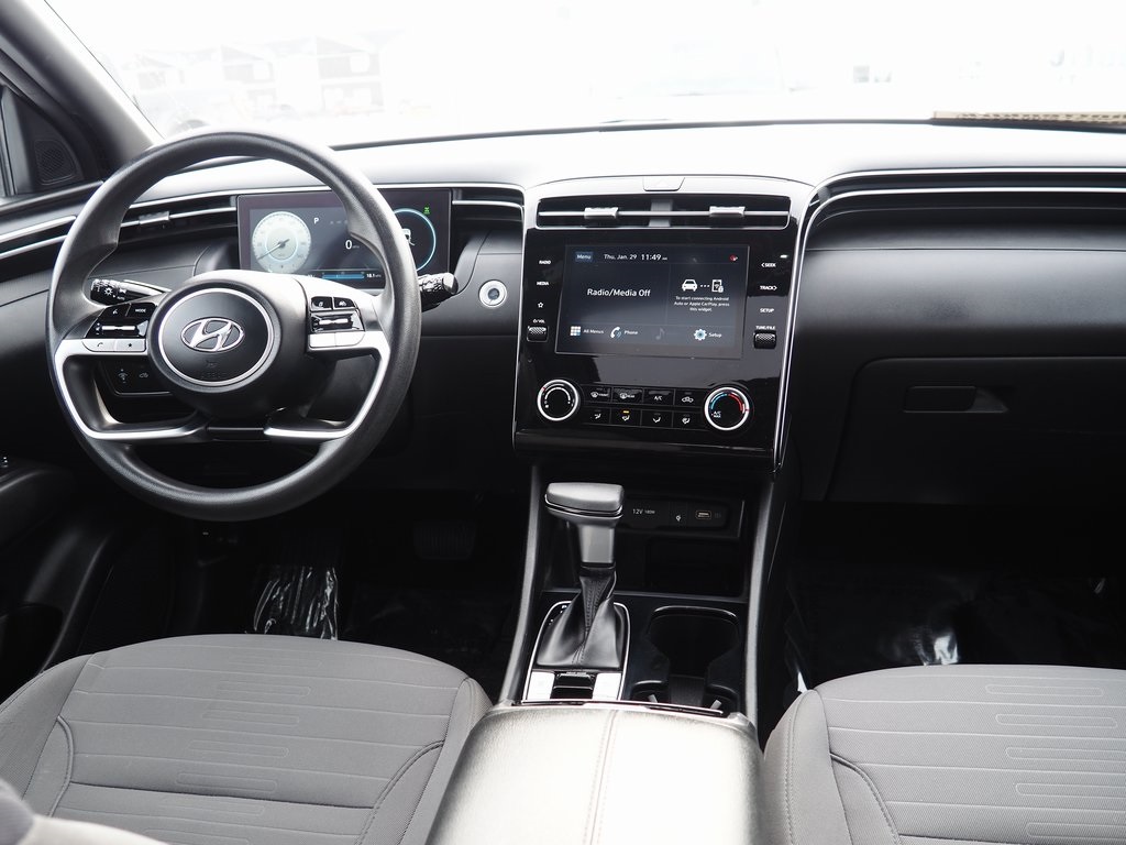 2023 Hyundai Santa Cruz SEL Atlas White 4D Crew Cab 2.5L I4 8-Speed Automatic with SHIFTRONIC AWD SEL This vehicle comes well equipped with Activity Package (10.25" Digital Instrument Cluster, 115V AC Power Inverter in Bed, 2 LED Bed Lighting, Conventional Power Sunroof, Dual C-Channel Utility Tracks on Bed Side, Integrated Tonneau Cover, LED Front & Rear Maplights, Option Group 02, Rear Sliding Glass Window w/Rear Defroster, Roof Side Rails, and Wireless Phone Charger (15W)), 18" x 7.5J Alloy Wheels, 4-Wheel Disc Brakes, 4.081 Axle Ratio, 6 Speakers, ABS brakes, Air Conditioning, Alloy wheels, AM/FM radio: SiriusXM, Apple CarPlay & Android Auto, Auto High-beam Headlights, Auto-leveling suspension, Brake assist, Bumpers: body-color, Carpeted Floor Mats, Delay-off headlights, Driver door bin, Driver vanity mirror, Dual front impact airbags, Dual front side impact airbags, Electronic Stability Control, Emergency communication system: Blue Link Connected Car Service (3-year complimentary subscription), Exterior Parking Camera Rear, First Aid Kit, Four wheel independent suspension, Front anti-roll bar, Front Bucket Seats, Front Center Armrest, Front reading lights, Fully automatic headlights, Heated door mirrors, Heated Front Bucket Seats, Heated front seats, Illuminated entry, Low tire pressure warning, Mudguards, Occupant sensing airbag, Outside temperature display, Overhead airbag, Overhead console, Panic alarm, Passenger door bin, Passenger vanity mirror, Power door mirrors, Power driver seat, Power steering, Power windows, Radio data system, Radio: AM/FM/HD Audio System, Rear anti-roll bar, Rear step bumper, Rear window defroster, Remote keyless entry, Roof Rack Cross Rails, Security system, Speed control, Speed-sensing steering, Split folding rear seat, Spoiler, Stain & Odor Resistant Cloth Seat Trim, Steering wheel mounted audio controls, Tachometer, Telescoping steering wheel, Tilt steering wheel, Traction control, Trip computer, Turn signal indicator mirrors, and Variably intermittent wipers.