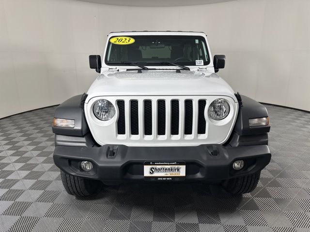 Recent Arrival! CARFAX One-Owner. Bright White Clearcoat 2023 Jeep Wrangler Sport S w/Hard Top 2D Sport Utility 2.0L I4 DOHC 4WD 8-Speed Automatic Automatic Headlamps, Cold Weather Group, Convenience Group, Deep Tint Sunscreen Windows, Front 1-Touch Down Power Windows, Heated Front Seats, Heated Steering Wheel, Power Heated Mirrors, Premium Wrapped Steering Wheel, Quick Order Package 22S Sport S, Remote Keyless Entry, Remote Start System, Security Alarm, Speed Sensitive Power Locks, Sport S, Sun Visors w/Illuminated Vanity Mirrors, Universal Garage Door Opener, Wheels: 17" x 7.5 Tech Silver Aluminum. Clean CARFAX.