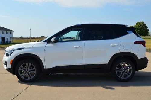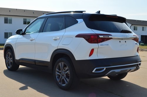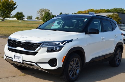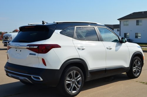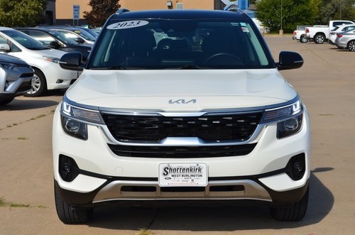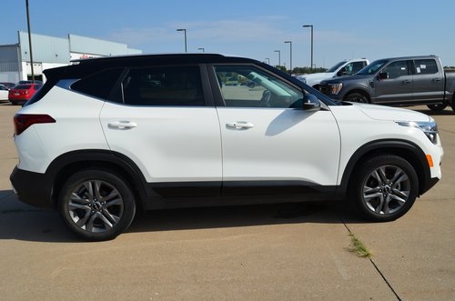 CARFAX One-Owner. 2023 Kia Seltos S Clear White/Black Roof 4D Sport Utility 2.0L I4 MPI CVT FWD S This vehicle comes well equipped with Glossy Black Door Garnish Package (Glossy Black Door Garnish), Navigation Package (Radio: AM/FM/MP3 Display Audio w/Navigation), 4-Wheel Disc Brakes, 6 Speakers, 6.052 Axle Ratio, ABS brakes, Air Conditioning, Alloy wheels, AM/FM radio, Apple CarPlay & Android Auto, Auto High-beam Headlights, Automatic temperature control, Brake assist, Bumpers: body-color, Carpet Floor Mats, Cloth & Sofino Premium Leatherette Seat Trim, Delay-off headlights, Driver door bin, Driver vanity mirror, Dual front impact airbags, Dual front side impact airbags, Electronic Stability Control, Emergency communication system: 911 Connect, Exterior Parking Camera Rear, Front anti-roll bar, Front Bucket Seats, Front Center Armrest, Front fog lights, Front reading lights, Front wheel independent suspension, Fully automatic headlights, Heated door mirrors, Illuminated entry, Interior Light Kit, Leather Shift Knob, Low tire pressure warning, Occupant sensing airbag, Outside temperature display, Overhead airbag, Overhead console, Panic alarm, Passenger door bin, Passenger vanity mirror, Power door mirrors, Power steering, Power windows, Radio: AM/FM/MP3 Display Audio, Rear seat center armrest, Rear window defroster, Rear window wiper, Remote keyless entry, Security system, Speed control, Speed-sensing steering, Split folding rear seat, Spoiler, Steering wheel mounted audio controls, Tachometer, Telescoping steering wheel, Tilt steering wheel, Traction control, Trip computer, Turn signal indicator mirrors, Variably intermittent wipers, and Wheels: 17" Alloy w/Dark Gray Finish. Odometer is 8350 miles below market average! 29/35 City/Highway MPG
