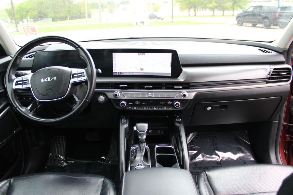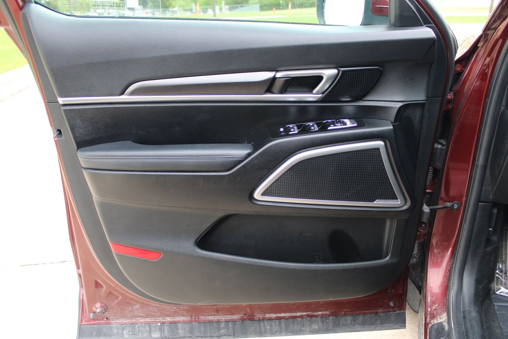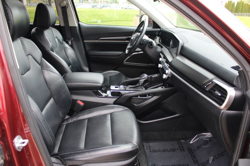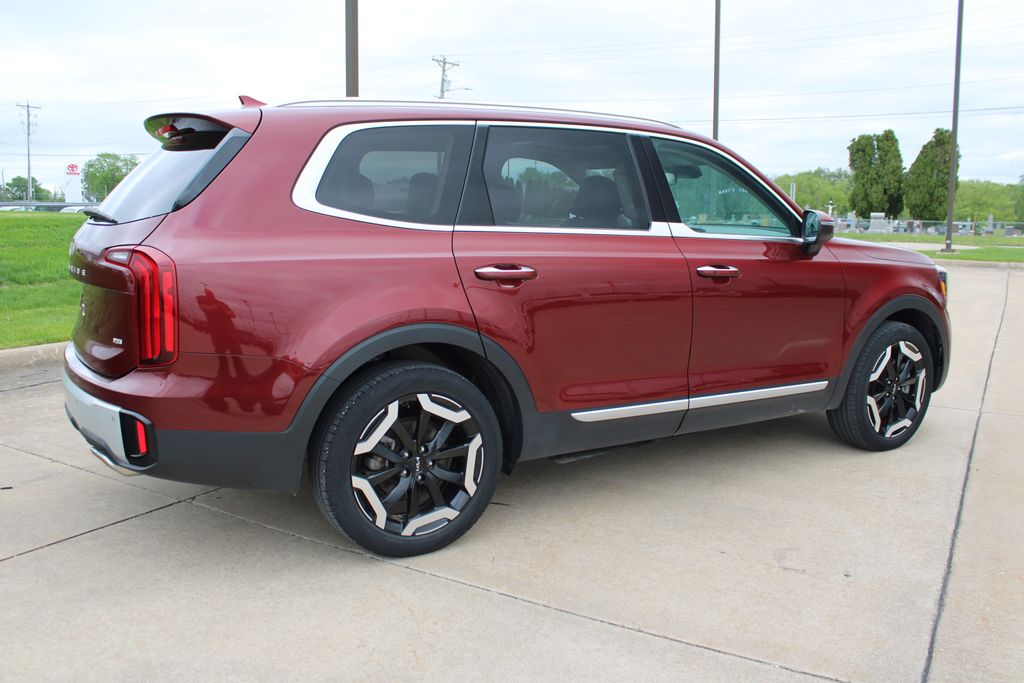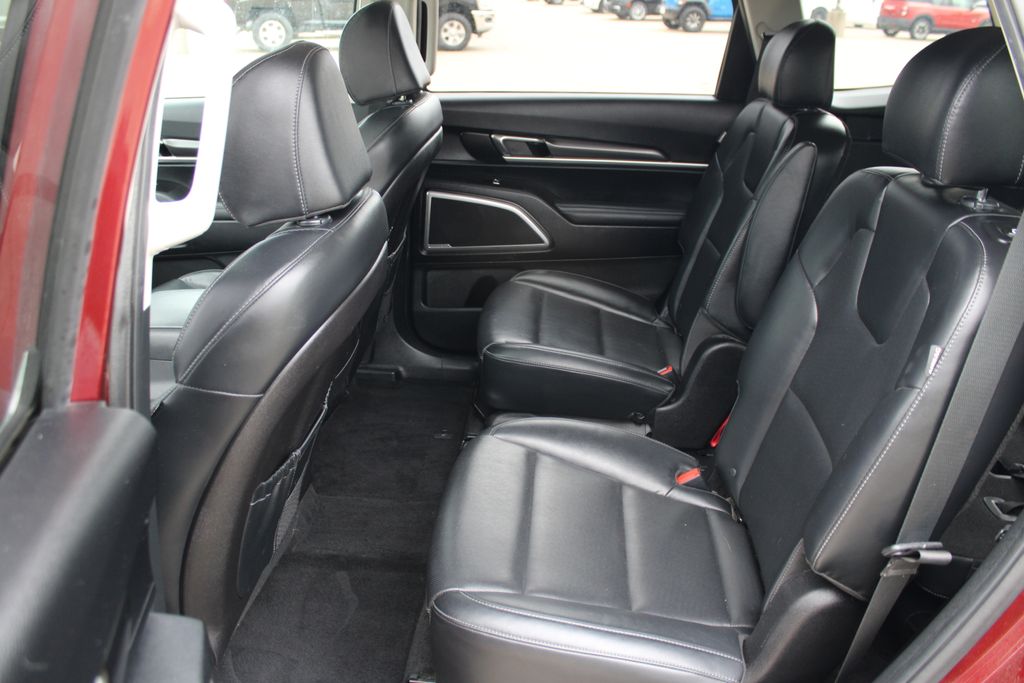 2023 Kia Telluride S Dawning Red 4D Sport Utility 3.8L V6 DGI DOHC Dual CVVT 8-Speed Automatic AWD S This vehicle comes well equipped with S Sunroof Package (Power Sunroof w/Sunshade), 3.648 Axle Ratio, 3rd row seats: split-bench, 4-Wheel Disc Brakes, 6 Speakers, ABS brakes, Air Conditioning, Alloy wheels, AM/FM radio: SiriusXM, Apple CarPlay & Android Auto, Auto High-beam Headlights, Automatic temperature control, Brake assist, Bumpers: body-color, Carpet Floor Mats, Delay-off headlights, Driver door bin, Driver vanity mirror, Dual front impact airbags, Dual front side impact airbags, Electronic Stability Control, Emergency communication system: 911 Connect, Exterior Parking Camera Rear, Four wheel independent suspension, Front anti-roll bar, Front Bucket Seats, Front Center Armrest, Front dual zone A/C, Front reading lights, Fully automatic headlights, Heated door mirrors, Heated Front Bucket Seats, Heated front seats, Illuminated entry, Knee airbag, Leather Shift Knob, Leather steering wheel, Low tire pressure warning, Navigation System, Occupant sensing airbag, Outside temperature display, Overhead airbag, Overhead console, Panic alarm, Passenger door bin, Passenger vanity mirror, Power door mirrors, Power driver seat, Power steering, Power windows, Radio data system, Radio: AM/FM Display Audio System, Rear air conditioning, Rear anti-roll bar, Rear audio controls, Rear reading lights, Rear side impact airbag, Rear window defroster, Rear window wiper, Reclining 3rd row seat, Remote keyless entry, Roof rack: rails only, Security system, Smart Key w/ Push Button and Remote Start, Speed control, Speed-sensing steering, Split folding rear seat, Spoiler, Steering wheel mounted audio controls, SynTex Synthetic Leather Seat Trim, Tachometer, Telescoping steering wheel, Tilt steering wheel, Traction control, Trip computer, Turn signal indicator mirrors, Variably intermittent wipers, and Wheels: 20" x 7.5" Black Finish.
