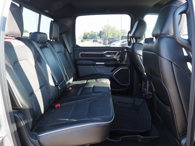 2023 Ram 1500 Laramie Billet Silver Metallic Clearcoat 4D Crew Cab HEMI 5.7L V8 Multi Displacement VVT eTorque 8-Speed Automatic 4WD Laramie This vehicle comes well equipped with Advanced Safety Group (Adaptive Cruise Control w/Stop & Go, Auto High Beam Headlamp Control, Lane Keep Assist, Parallel & Perp Park Assist w/Stop, Pedestrian Emergency Braking, Surround View Camera System, and Tailgate Ajar Warning Lamp), Laramie Level B Equipment Group (12" Touchscreen Display, 2nd Row In Floor Storage Bins, 4G LTE Wi-Fi Hot Spot, Apple CarPlay, Blind Spot & Cross Path Detection, Connected Travel & Traffic Services, Connectivity - US/Canada, Disassociated Touchscreen Display, Electric Shift-On-Demand Transfer Case, Foam Bottle Insert (Door Trim Panel), For Details, Visit DriveUconnect.com, For More Info, Call 800-643-2112, Front Door Accent Lighting, Front LED Fog Lamps, Global Telematics Box Module (TBM), Google Android Auto, GPS Antenna Input, GPS Navigation, harman/kardon 19 Speaker Premium Sound, HD Radio, Integrated Center Stack Radio, Integrated Voice Command w/Bluetooth, LED Reflector Headlamps, ParkSense Front/Rear Park Assist w/Stop, Radio: Uconnect 5 Nav w/12.0" Display, Rain Sensitive Windshield Wipers, Rear Door Accent Lighting, Rear Power Sliding Window, Rear Underseat Compartment Storage, Rear Window Defroster, Remote Tailgate Release, SiriusXM Radio Service, SiriusXM w/360L, and USB Host Flip), Night Edition (#1 Seat Foam Cushion, 3 Rear Seat Head Restraints, 4 Way Front Headrests, Accent Color Door Handles, Accent Color Premium Power Mirrors, Auto-Dimming Exterior Driver Mirror, Black Exterior Truck Badging, Black Headlamp Bezels, Black Interior Accents, Black Painted Exterior Mirrors Caps, Body Color Front Bumper, Body Color Rear Bumper w/Step Pads, Bucket Seats, Center Console Parts Module, Convex Wide-Angle Exterior Mirror Insert, Driver Seat Memory, Dual Exhaust w/Black Tips, Exterior Mirrors Courtesy Lamps, Exterior Mirrors w/Heating Element, Exterior Mirrors w/Memory, Exterior Mirrors w/Supplemental Signals, Front Seat Back Map Pockets, Full Length Upgraded Floor Console, Grille Surround 3 Black Texture 2 Black, Heated Front Seats, Heated Steering Wheel, Leather Trimmed Bucket Seats, Power 2-Way Driver Lumbar Adjust, Power 2-Way Passenger Lumbar Adjust, Power 8-Way Driver & Passenger Seats, Power-Folding Mirrors, RAM Grille Badge - Black, Rear 60/40 Folding Seat, Sport Performance Hood, Ventilated Front Seats, and Wheels: 22" x 9" Forged Aluminum), Quick Order Package 27H Laramie, Sport Appearance Package (Body Color Exterior Mirrors, Body Color Premium Power Mirrors, Grille Surround 3 Body Color Tex 2 Black, RAM Grille Badge - Chrome, Sport Decal, and Wheels: 20" x 9" Premium Painted w/Inserts), 10 Speakers, and Navigation System Advanced Safety Group (Adaptive Cruise Control w/Stop & Go, Auto High Beam Headlamp Control, Lane Keep Assist, Parallel & Perp Park Assist w/Stop, Pedestrian Emergency Braking, Surround View Camera System, and Tailgate Ajar Warning Lamp), Laramie Level B Equipment Group (12" Touchscreen Display, 2nd Row In Floor Storage Bins, 4G LTE Wi-Fi Hot Spot, Apple CarPlay, Blind Spot & Cross Path Detection, Connected Travel & Traffic Services, Connectivity - US/Canada, Disassociated Touchscreen Display, Electric Shift-On-Demand Transfer Case, Foam Bottle Insert (Door Trim Panel), For Details, Visit DriveUconnect.com, For More Info, Call 800-643-2112, Front Door Accent Lighting, Front LED Fog Lamps, Global Telematics Box Module (TBM), Google Android Auto, GPS Antenna Input, GPS Navigation, harman/kardon 19 Speaker Premium Sound, HD Radio, Integrated Center Stack Radio, Integrated Voice Command w/Bluetooth, LED Reflector Headlamps, ParkSense Front/Rear Park Assist w/Stop, Radio: Uconnect 5 Nav w/12.0" Display, Rain Sensitive Windshield Wipers, Rear Door Accent Lighting, Rear Power Sliding Window, Rear Underseat Compartment Storage, Rear Window Defroster, Remote Tailgat