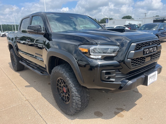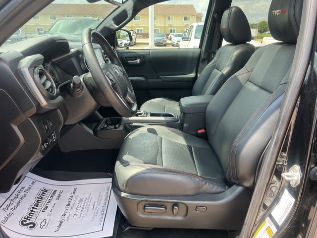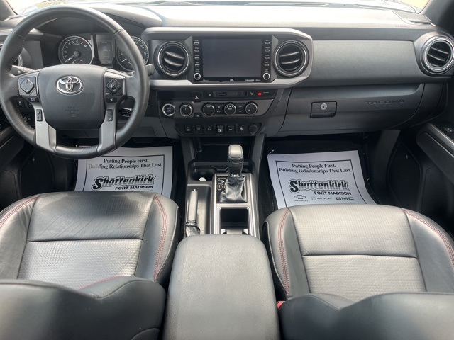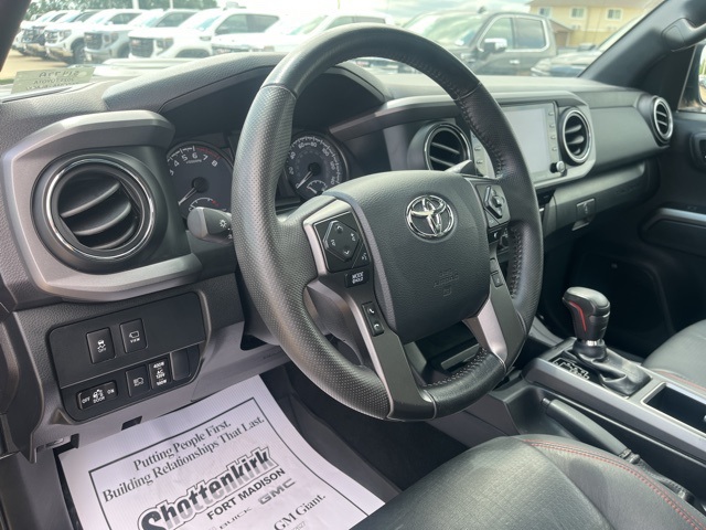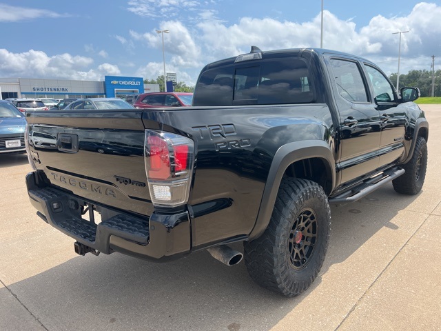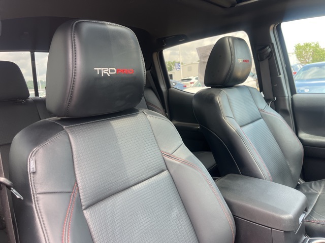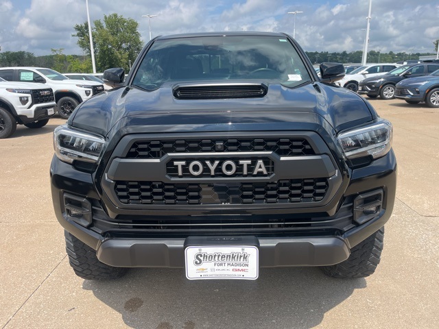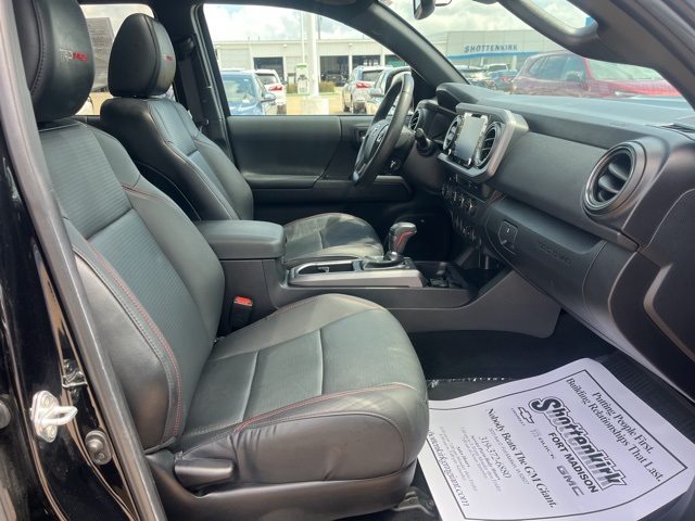 CARFAX One-Owner. Clean CARFAX. Leather, Heated seats, Heated steering wheel, XM SIRIUS Radio, Push button start, Local trade, Shottenkirk Certified, Fully Serviced and Detailed, Bluetooth, Rear Back Up Camera, Power driver's seat, Power passenger seat, Memory seats, Blind spot indicator, Tow package, Safety Package, Convenience Package, Apple Car Play, Premium wheels and tires, LCD display screen, Balance of factory warranty, Free Carfax history report, Steering Wheel Controls, Alloy Wheels, Leather Interior, Lane Monitor, Tacoma TRD Pro V6, 4D Double Cab, 3.5L V6, 6-Speed, 4WD, Black, Black w/TRD Pro Leather Seat Trim, 120V/400W Deck Mounted AC Power, ABS brakes, Air Conditioning, Alloy wheels, AM/FM radio: SiriusXM, Anti-whiplash front head restraints, Auto High-beam Headlights, Auto-dimming Rear-View mirror, Auto-Dimming Rearview Mirror w/HomeLink, Automatic temperature control, Bed Step (TMS), Black Overfenders, Black Wheel Locks, Blind Spot Monitor w/Rear Cross Traffic Alert, Brake assist, Bumpers: body-color, Driver door bin, Dual front impact airbags, Dual front side impact airbags, Electronic stabiliy control, Emergency communication system: Safety Connect (1-year trial), Engine Immobilizer, Exterior Parking Camera Rear, Front anti-roll bar, Front Bucket Seats, Front Center Armrest, Front dual zone A/C, Front fog lights, Front Heated Seats, Front reading lights, Front wheel independent suspension, Fully automatic headlights, Heated door mirrors, Heated front seats, Heritage Grille, Hood Graphics, Illuminated entry, Knee airbag, Leather Shift Knob, Low tire pressure warning, Multi Terrain Monitor w/Camera, Navigation System, Occupant sensing airbag, Outside temperature display, Overhead airbag, Overhead console, Panic alarm, Passenger door bin, Power door mirrors, Power driver seat, Power Sliding Rear Window w/Privacy Glass, Power steering, Power windows, Rear Parking Assist Sonar, Rear Parking Sensors, Rear step bumper, Remote keyless entry, Rigid Industries LED Fog Lights, Security system, Speed control, Speed-sensing steering, Split folding rear seat, Steering wheel mounted audio controls, Tachometer, Telescoping steering wheel, Tilt steering wheel, Traction control, TRD Pro Cat-Back Exhaust, TRD Pro Exterior Badging, TRD Pro Floor Mats, TRD Pro Headlamps, TRD Pro Leather Seat Trim, TRD Pro Package, TRD Pro Shift Knob, TRD-Tuned Off-Road Suspension, Trip computer, Turn signal indicator mirrors, Variably intermittent wipers, Wheels: 16" TRD Pro Black Alloy.