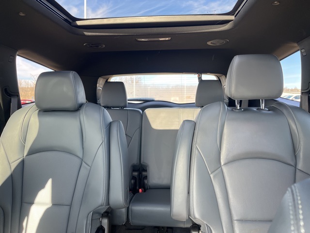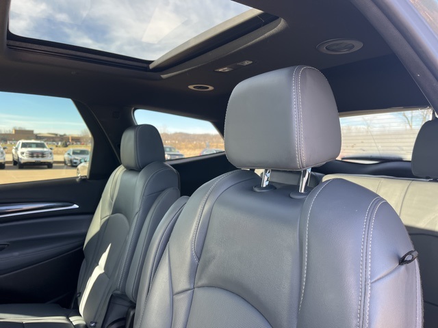 CARFAX One-Owner. Clean CARFAX. Navigation, Moonroof, Leather, Heated and cooled seats, Heated seats, Heated steering wheel, XM SIRIUS Radio, Push button start, Local trade, Shottenkirk Certified, Fully Serviced and Detailed, Bluetooth, Rear Back Up Camera, Three rows of seating, Power driver's seat, Power passenger seat, Memory seats, Blind spot indicator, Apple Car Play, LCD display screen, Onstar, Balance of factory warranty, Free Carfax history report, Steering Wheel Controls, Alloy Wheels, Leather Interior, Power Sunroof/Moonroof, Lane Monitor, Enclave Premium Group, 4D Sport Utility, 3.6L V6 SIDI VVT, 9-Speed Automatic, AWD, Sage Metallic, Dark Galvanized w/Ebony Accents w/Perforated Leather-Appointed Seat Trim, 10 Speakers, 20" Polished Aluminum Wheels, 3.49 Final Drive Axle Ratio, 3rd row seats: split-bench, 4-Wheel Disc Brakes, 6-Way Power Front Passenger Seat Adjuster, 7-Passenger Seating, 8-Way Power Driver Seat Adjuster, ABS brakes, Air Conditioning, Alloy wheels, AM/FM radio: SiriusXM with 360L, Auto High-beam Headlights, Auto-dimming door mirrors, Auto-dimming Rear-View mirror, Automatic temperature control, Bose Performance-Enhanced 10-Speaker System, Brake assist, Bumpers: body-color, Compass, Delay-off headlights, Driver 4-Way Power Lumbar Seat Adjuster, Driver door bin, Driver vanity mirror, Dual front impact airbags, Dual front side impact airbags, Electronic stabiliy control, Emergency communication system: OnStar and Buick connected services capable, Experience Buick Package, Exterior Parking Camera Rear, Four wheel independent suspension, Front anti-roll bar, Front Bucket Seats, Front Center Armrest, Front dual zone A/C, Front Mounting License Plate Bracket Package, Front Passenger 4-Way Power Lumbar Seat Adjuster, Front Power Sliding Moonroof, Front reading lights, Fully automatic headlights, Garage door transmitter, Heads-Up Display, Heated door mirrors, Heated Driver & Front Passenger Seats, Heated front seats, Heated rear seats, Heated steering wheel, Illuminated entry, Leather steering wheel, Low tire pressure warning, Memory seat, Navigation System, Occupant sensing airbag, Outside temperature display, Overhead airbag, Overhead console, Panic alarm, Passenger door bin, Passenger vanity mirror, Perforated Leather-Appointed Seat Trim, Power door mirrors, Power driver seat, Power Liftgate, Power passenger seat, Power steering, Power windows, Preferred Equipment Group 1SN, Premium audio system: Buick Infotainment System, Radio data system, Radio: Buick Infotainment Sys AM/FM Stereo w/Nav, Rear air conditioning, Rear anti-roll bar, Rear reading lights, Rear window defroster, Rear window wiper, Remote keyless entry, Security system, SiriusXM w/360L, Speed control, Speed-sensing steering, Spoiler, Steering wheel memory, Steering wheel mounted audio controls, Tachometer, Telescoping steering wheel, Tilt steering wheel, Traction control, Trip computer, Turn signal indicator mirrors, Variably intermittent wipers, Vehicle Health Management, Ventilated Driver & Front Passenger Seats, Ventilated front seats, Voltmeter, Wireless Apple CarPlay/Wireless Android Auto.