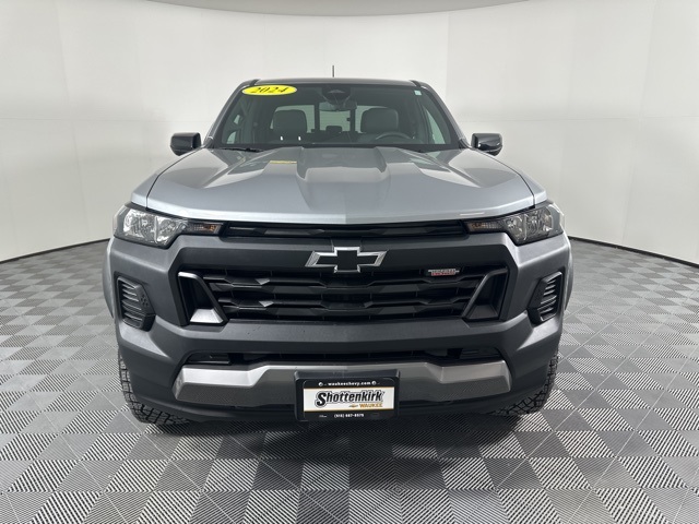 CARFAX One-Owner. Sterling Gray Metallic 2024 Chevrolet Colorado Trail Boss w/Safety Pkg 4D Crew Cab 2.7L I4 Turbocharged DOHC 16V LEV3-ULEV50 310hp 4WD 8-Speed Automatic Advanced Trailering Package, Automatic Emergency Braking, Black Painted Mirror Caps, Chevy Safety Assist, Electronic Automatic Cruise Control, Following Distance Indicator, Forward Collision Alert, Front Pedestrian & Bicyclist Braking, Heated Power-Adjustable Outside Mirrors, Heavy-Duty Trailering Package, Integrated Trailer Brake Controller, IntelliBeam Automatic High Beam On/Off, Lane Keep Assist w/Lane Departure Warning, Manual Rear-Sliding Window, Navigation System, Preferred Equipment Group 0TR, Rear Cross Traffic Braking, Rear Park Assist, Rear-Window Electric Defogger, Safety Package, Trail Boss Convenience Package, Trailering App.