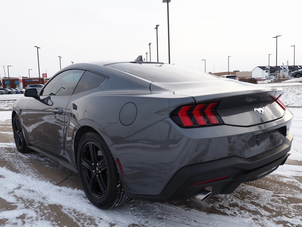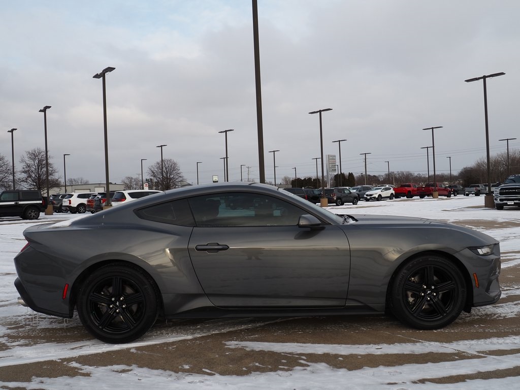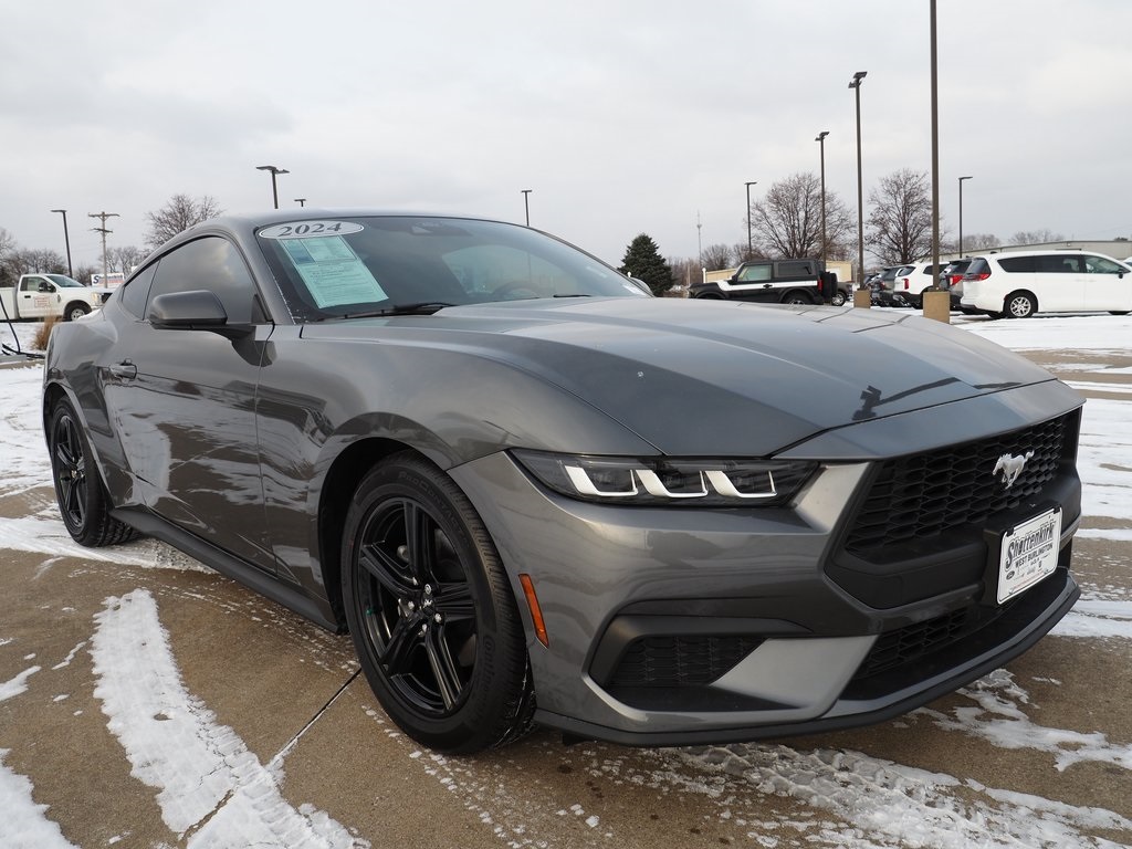 2024 Ford Mustang EcoBoost Carbonized Gray Metallic 2D Coupe EcoBoost 2.3L I4 GTDi DOHC Turbocharged VCT 10-Speed Automatic RWD EcoBoost This vehicle comes well equipped with ABS brakes, Alloy wheels, Compass, Electronic Stability Control, Illuminated entry, Low tire pressure warning, Remote keyless entry, and Traction control ABS brakes, Alloy wheels, Compass, Electronic Stability Control, Illuminated entry, Low tire pressure warning, Remote keyless entry, Traction control, 4-Wheel Disc Brakes, 6 Speakers, Air Conditioning, AM/FM radio, AM/FM Stereo, Auto High-beam Headlights, Automatic temperature control, Brake assist, Bumpers: body-color, Cloth Bucket Seats, Delay-off headlights, Driver door bin, Driver vanity mirror, Dual front impact airbags, Dual front side impact airbags, Emergency communication system: 911 Assist, Exterior Parking Camera Rear, Four wheel independent suspension, Front anti-roll bar, Front Bucket Seats, Front Center Armrest, Front reading lights, Fully automatic headlights, Knee airbag, Leather Shift Knob, Occupant sensing airbag, Outside temperature display, Overhead airbag, Overhead console, Panic alarm, Passenger door bin, Passenger vanity mirror, Power door mirrors, Power steering, Power windows, Radio data system, Rain sensing wipers, Rear anti-roll bar, Rear Parking Sensors, Rear window defroster, Speed control, Speed-sensing steering, Speed-Sensitive Wipers, Split folding rear seat, Sport steering wheel, Steering wheel mounted audio controls, SYNC 4.0 QNX, Tachometer, Telescoping steering wheel, Tilt steering wheel, Trip computer, Variably intermittent wipers, Voltmeter, and Wheels: 18" x 8" Machined-Face Aluminum.