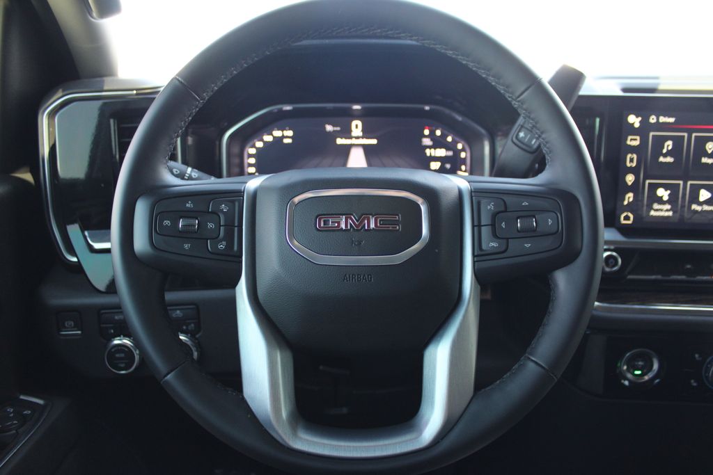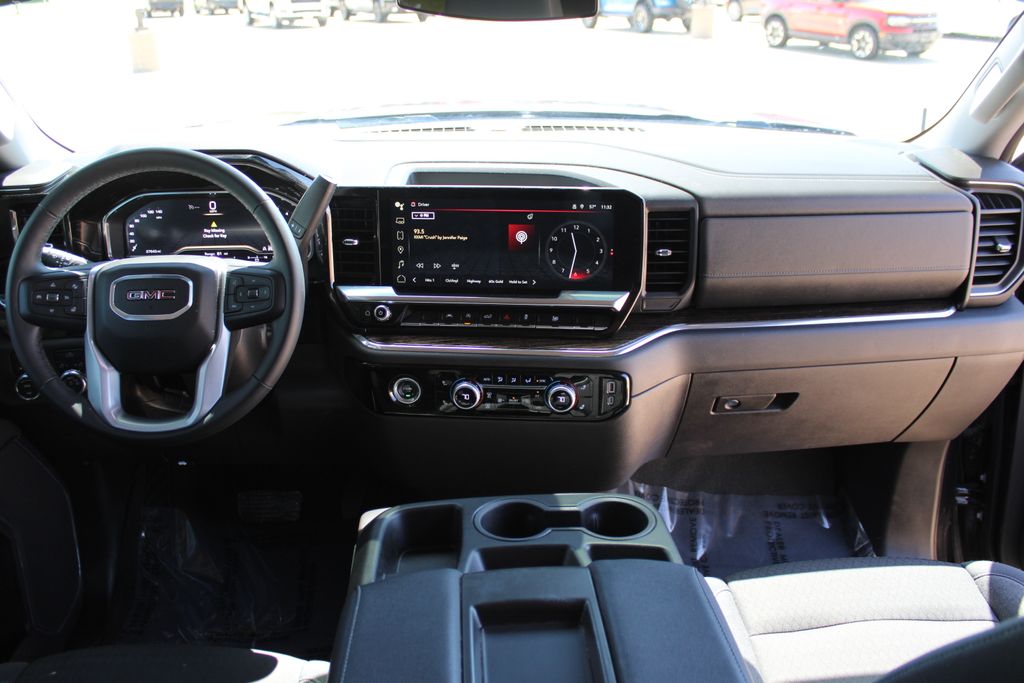 2024 GMC Sierra 1500 Elevation Titanium Rush Metallic 4D Crew Cab EcoTec3 5.3L V8 10-Speed Automatic 4WD Elevation This vehicle comes well equipped with Cloth Rear Seat w/Storage Package, High Capacity Suspension Package, Preferred Equipment Group 3SB (120-Volt Bed Mounted Power Outlet, 120-Volt Interior Power Outlet, 2 Charge/Data USB Ports, 2 Type-C Charge-Only Rear USB Ports, 6-Speaker Audio System Feature, Auto-Locking Rear Differential, Body Color Header w/Gloss Black Mesh Grille Bars, Color-Keyed Carpeting Floor Covering, Deep-Tinted Glass, Electric Rear-Window Defogger, Front Frame-Mounted Black Recovery Hooks, Front Rubberized-Vinyl Floor Mats, GMC Connected Access Capable, HD Rear Vision Camera, Keyless Open & Start, LED Cargo Area Lighting, Manual Tilt-Wheel & Telescoping Steering Column, OnStar & GMC Connected Services Capable, Power Door Locks, Power Front Windows w/Driver Express Up/Down, Power Front Windows w/Passenger Express Down, Power Rear Windows w/Express Down, Push Button Start, Rear Rubberized-Vinyl Floor Mats, Remote Vehicle Starter System, SiriusXM w/360L, Steering Wheel Audio Controls, Theft Deterrent System (Unauthorized Entry), and Wi-Fi Hotspot Capable), Trailering Package (Hitch Guidance), 10-Way Power Driver Seat Adjuster w/Lumbar, 170 Amp Alternator, 220 Amp Alternator, 4-Way Manual Passenger Seat Adjuster, 4-Wheel Disc Brakes, 6 Speakers, ABS brakes, Air Conditioning, Alloy wheels, AM/FM radio: SiriusXM with 360L, Apple CarPlay/Android Auto, Auto High-beam Headlights, Automatic Emergency Braking, Automatic temperature control, Auxiliary External Transmission Oil Cooler, Brake assist, Buckle to Drive, Bumpers: body-color, Cloth Seat Trim, Compass, Delay-off headlights, Driver door bin, Driver vanity mirror, Dual front impact airbags, Dual front side impact airbags, Electronic Stability Control, External Engine Oil Cooling, Following Distance Indicator, Forward Collision Alert, Front 40/20/40 Split-Bench Seat, Front anti-roll bar, Front Center Armrest w/Storage, Front dual zone A/C, Front fog lights, Front License Plate Kit, Front Pedestrian Braking, Front reading lights, Front wheel independent suspension, Fully automatic headlights, Genuine wood dashboard insert, Heated door mirrors, Heated Driver & Front Outboard Passenger Seating, Heated front seats, Heated steering wheel, Illuminated entry, IntelliBeam Automatic High Beam On/Off, Lane Keep Assist w/Lane Departure Warning, Low tire pressure warning, Navigation System, Occupant sensing airbag, Off-Road High Clearance Step (LPO), Outside temperature display, Overhead airbag, Overhead console, Panic alarm, Passenger door bin, Passenger vanity mirror, Power door mirrors, Power driver seat, Power steering, Power windows, Premium audio system: GMC Infotainment System, Radio data system, Radio: Premium GMC Infotainment Audio System, Rear reading lights, Rear seat center armrest, Rear step bumper, Rear window defroster, Remote keyless entry, Security system, Speed control, Speed-sensing steering, Split folding rear seat, Standard Tailgate, Steering wheel mounted audio controls, Tachometer, Telescoping steering wheel, Tilt steering wheel, Traction control, Trip computer, Variably intermittent wipers, Voltmeter, Wheels: 20" x 9" High Gloss Black Painted Aluminum, and Wireless Apple CarPlay/Wireless Android Auto.