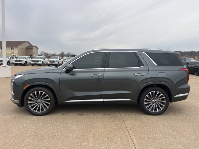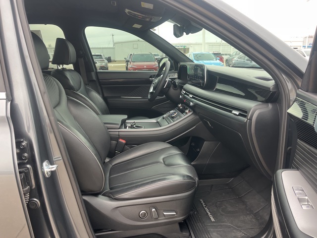 CARFAX One-Owner. Navigation, Moonroof, Leather, Heated and cooled seats, Heated seats, Heated steering wheel, XM SIRIUS Radio, Push button start, Local trade, Shottenkirk Certified, Fully Serviced and Detailed, Bluetooth, Rear Back Up Camera, Three rows of seating, Power driver's seat, Power passenger seat, Memory seats, Blind spot indicator, Apple Car Play, Balance of factory warranty, Free Carfax history report, Steering Wheel Controls, Alloy Wheels, Leather Interior, Power Sunroof/Moonroof, Lane Monitor, Palisade Calligraphy, 4D Sport Utility, V6, 8-Speed Automatic with SHIFTRONIC, AWD, Steel Graphite, Black w/Premium Nappa Leather Seat Trim, 12 Speakers, 3.648 Axle Ratio, 3rd row seats: split-bench, 4-Wheel Disc Brakes, ABS brakes, Air Conditioning, All-Season Fitted Liners, Alloy wheels, AM/FM radio: SiriusXM, Apple CarPlay & Android Auto, Auto High-beam Headlights, Auto-dimming door mirrors, Auto-dimming Rear-View mirror, Auto-leveling suspension, Automatic temperature control, Brake assist, Bumper Applique, Bumpers: body-color, Cargo Net, Cargo Tray, Carpeted Floor Mats, Compass, Delay-off headlights, Driver door bin, Driver vanity mirror, Dual front impact airbags, Dual front side impact airbags, Electronic stabiliy control, Emergency communication system, Exterior Parking Camera Rear, Four wheel independent suspension, Front anti-roll bar, Front Bucket Seats, Front Center Armrest, Front dual zone A/C, Front reading lights, Fully automatic headlights, Garage door transmitter: HomeLink, harman/kardon® Speakers, Heads-Up Display, Heated & Ventilated Front Bucket Seats, Heated door mirrors, Heated front seats, Heated rear seats, Heated steering wheel, Illuminated entry, Knee airbag, Low tire pressure warning, Memory seat, Navigation System, Occupant sensing airbag, Option Group 01, Outside temperature display, Overhead airbag, Overhead console, Panic alarm, Passenger door bin, Passenger vanity mirror, Power door mirrors, Power driver seat, Power Liftgate, Power moonroof, Power passenger seat, Power steering, Power windows, Premium Nappa Leather Seat Trim, Radio data system, Radio: AM/FM/MP3 Premium Audio System, Rain sensing wipers, Rear air conditioning, Rear anti-roll bar, Rear audio controls, Rear reading lights, Rear side impact airbag, Rear window defroster, Rear window wiper, Reclining 3rd row seat, Remote keyless entry, Security system, Speed control, Speed-sensing steering, Split folding rear seat, Spoiler, Steering wheel mounted audio controls, Tachometer, Telescoping steering wheel, Tilt steering wheel, Traction control, Trip computer, Turn signal indicator mirrors, Variably intermittent wipers, Ventilated front seats, Ventilated rear seats, Wheel Locks, Wheels: 20" x 7.5J Calligraphy Exclusive Alloy.