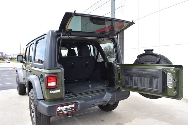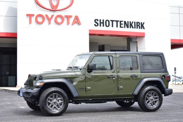 2024 Jeep Wrangler Sarge Green Clearcoat Sport S 2.0L I4 DOHC 8-Speed Automatic 4WD Towing/Camper Pkg, Clean Carfax, One Owner, Backup Camera, Wrangler Sport S, 8-Speed Automatic, 4WD, Sarge Green Clearcoat, Black Cloth, 8 Speakers, ABS brakes, Air Conditioning, AM/FM radio, Automatic Headlamps, Compass, Driver door bin, Driver vanity mirror, Front Bucket Seats, Front Center Armrest w/Storage, Front reading lights, Low tire pressure warning, Outside temperature display, ParkView Rear Back-Up Camera, Passenger door bin, Passenger vanity mirror, Power Heated Mirrors, Power steering, Radio data system, Rear Window Defroster, Rear Window Wiper/Washer, Remote Keyless Entry, Speed control, Split folding rear seat, Sport S, Steering wheel mounted audio controls, Telescoping steering wheel, Tilt steering wheel, Traction control.