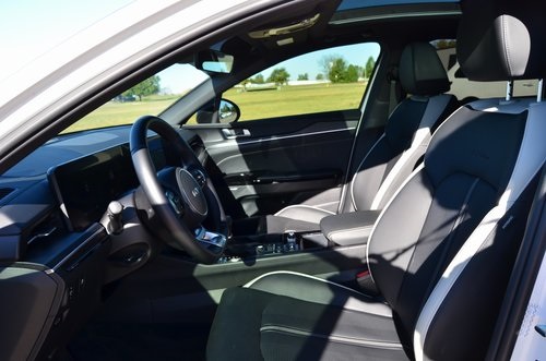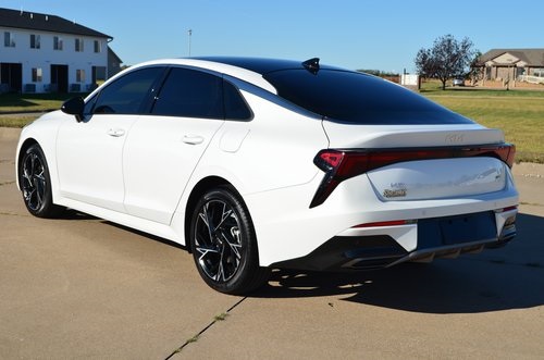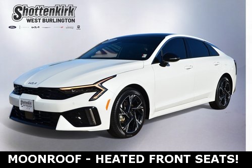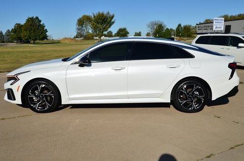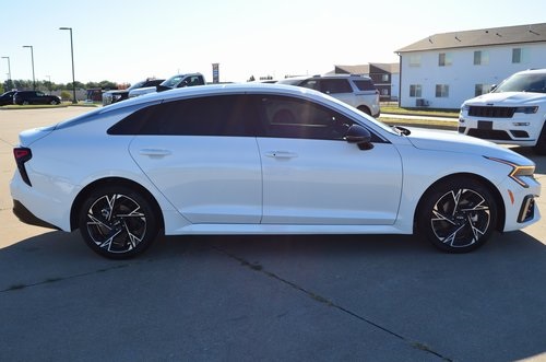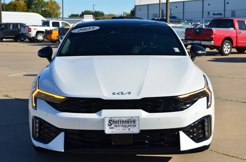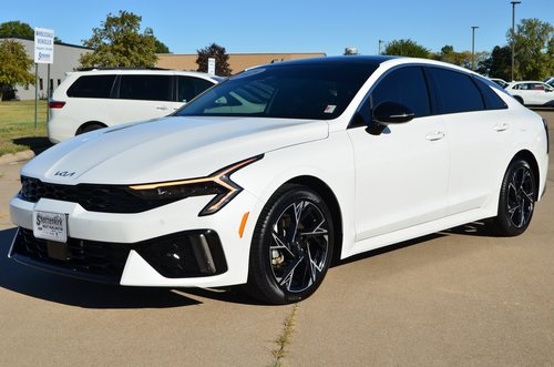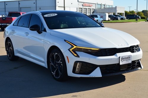 CARFAX One-Owner. 2025 Kia K5 GT-Line Snow White Pearl 4D Sedan I4 8-Speed Automatic FWD GT-Line This vehicle comes well equipped with GT-Line Premium Package (Active Sound Design, Bose Premium Audio, LED Interior Lighting, and Panoramic Sunroof), 4-Wheel Disc Brakes, 6 Speakers, ABS brakes, Air Conditioning, Alloy wheels, AM/FM radio: SiriusXM, Auto High-beam Headlights, Automatic temperature control, Brake assist, Bumpers: body-color, Carpeted Floor Mats, Delay-off headlights, Driver door bin, Driver vanity mirror, Dual front impact airbags, Dual front side impact airbags, Electronic Stability Control, Emergency communication system: Kia Connect (includes 1 year free trial), Four wheel independent suspension, Front anti-roll bar, Front Bucket Seats, Front Center Armrest, Front dual zone A/C, Front fog lights, Front reading lights, Fully automatic headlights, Heated door mirrors, Heated Front Bucket Seats, Heated front seats, Heated steering wheel, Illuminated entry, Knee airbag, Leather Shift Knob, Leather steering wheel, Low tire pressure warning, Navigation System, Occupant sensing airbag, Outside temperature display, Overhead airbag, Overhead console, Panic alarm, Passenger door bin, Passenger vanity mirror, Power door mirrors, Power driver seat, Power steering, Power windows, Radio data system, Radio: AM/FM Audio System, Rear anti-roll bar, Rear seat center armrest, Rear side impact airbag, Rear window defroster, Remote keyless entry, Security system, Speed control, Speed-sensing steering, Split folding rear seat, Sport steering wheel, Steering wheel mounted audio controls, Tachometer, Telescoping steering wheel, Tilt steering wheel, Traction control, Trip computer, Turn signal indicator mirrors, Variably intermittent wipers, and Wheels: 18" x 7.5J Gloss Black Machined Finish Alloy. Odometer is 1709 miles below market average! 25/36 City/Highway MPG