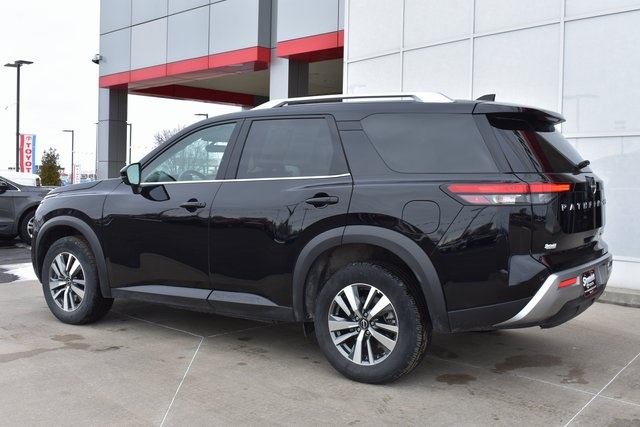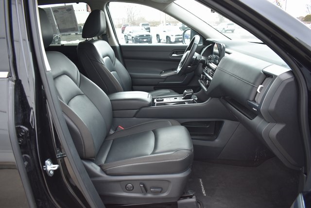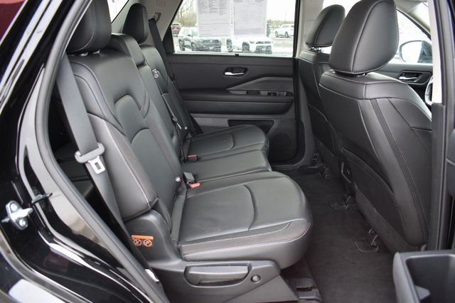 2025 Nissan Pathfinder Super Black SL 3.5L V6 DOHC 9-Speed Automatic 4WD Clean Carfax, One Owner, Navigation, Leather, Backup Camera, Pathfinder SL, 9-Speed Automatic, 4WD, Super Black, Charcoal Leather, 3rd row seats: bench, 6 Speakers, ABS brakes, Air Conditioning, Alloy wheels, AM/FM radio: SiriusXM, Automatic temperature control, Bumpers: body-color, Driver door bin, Driver vanity mirror, Exterior Parking Camera Rear, Front Bucket Seats, Front Center Armrest, Front dual zone A/C, Front reading lights, Fully automatic headlights, Heated door mirrors, Heated Front Bucket Seats, Heated front seats, Heated Rear Seats, Heated steering wheel, Illuminated entry, Leather steering wheel, Low tire pressure warning, Navigation system: NissanConnect with Navigation and Services, NissanConnect with Navigation and Services, Occupant sensing airbag, Outside temperature display, Overhead console, Panic alarm, Passenger door bin, Passenger vanity mirror, Power door mirrors, Power driver seat, Power Liftgate, Power passenger seat, Power steering, Power windows, Radio data system, Radio: AM/FM Audio System, Rear air conditioning, Rear seat center armrest, Rear window defroster, Rear window wiper, Reclining 3rd row seat, Remote keyless entry, Speed control, Split folding rear seat, Spoiler, Steering wheel mounted audio controls, Telescoping steering wheel, Tilt steering wheel, Traction control, Trip computer.
